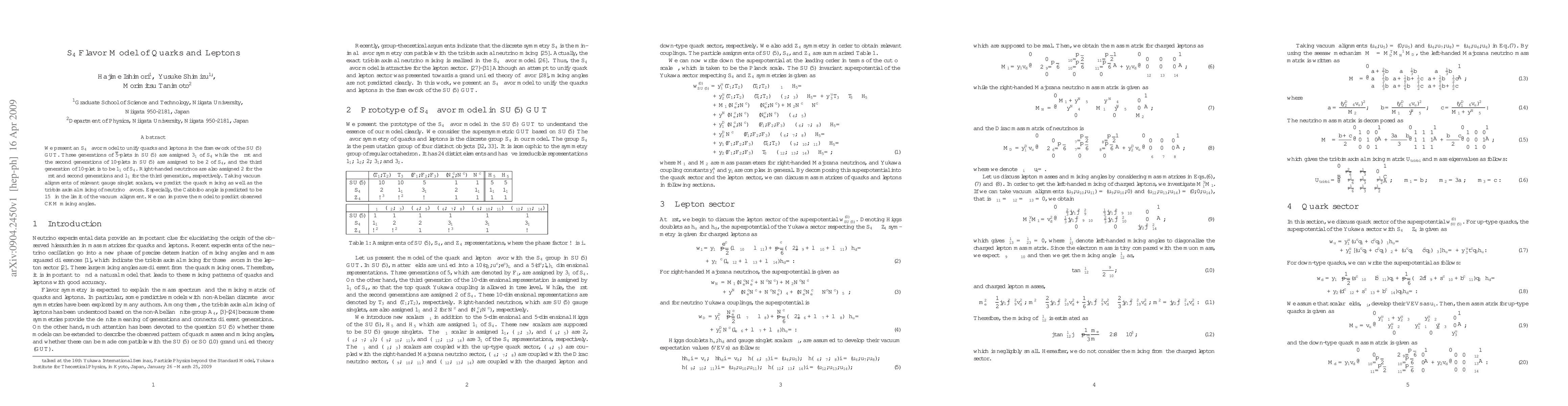 The paper introduces a detailed $S_4$ flavor model within the SU(5) GUT, providing explicit mass matrices for both quarks and leptons, and demonstrating how vacuum alignments of gauge singlet scalars can predict observed mixing angles.