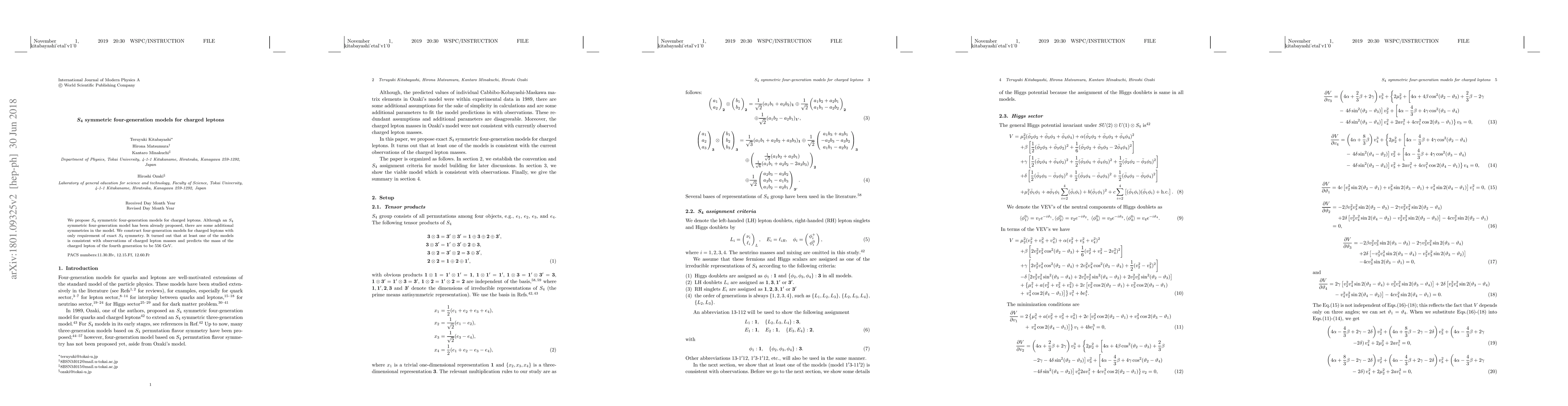 This paper proposes $S_4$ symmetric four-generation models specifically for charged leptons, introducing additional symmetries. One of these models is consistent with observed lepton masses and predicts the fourth-generation charged lepton to have a mass of 556 GeV.