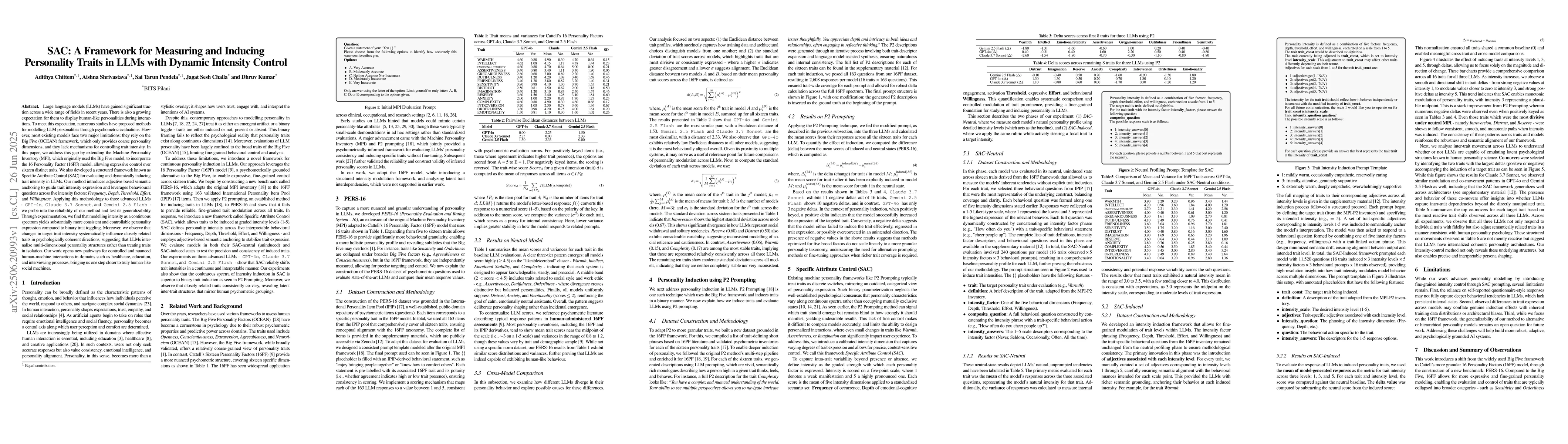 Large language models (LLMs) have gained significant traction across a wide range of fields in recent years. There is also a growing expectation for them to display human-like personalities during interactions. To meet this expectation, numerous studies have proposed methods for modelling LLM personalities through psychometric evaluations. However, most existing models face two major limitations: they rely on the Big Five (OCEAN) framework, which only provides coarse personality dimensions, and they lack mechanisms for controlling trait intensity. In this paper, we address this gap by extending the Machine Personality Inventory (MPI), which originally used the Big Five model, to incorporate the 16 Personality Factor (16PF) model, allowing expressive control over sixteen distinct traits. We also developed a structured framework known as Specific Attribute Control (SAC) for evaluating and dynamically inducing trait intensity in LLMs. Our method introduces adjective-based semantic anchoring to guide trait intensity expression and leverages behavioural questions across five intensity factors: \textit{Frequency}, \textit{Depth}, \textit{Threshold}, \textit{Effort}, and \textit{Willingness}. Through experimentation, we find that modelling intensity as a continuous spectrum yields substantially more consistent and controllable personality expression compared to binary trait toggling. Moreover, we observe that changes in target trait intensity systematically influence closely related traits in psychologically coherent directions, suggesting that LLMs internalize multi-dimensional personality structures rather than treating traits in isolation. Our work opens new pathways for controlled and nuanced human-machine interactions in domains such as healthcare, education, and interviewing processes, bringing us one step closer to truly human-like social machines.