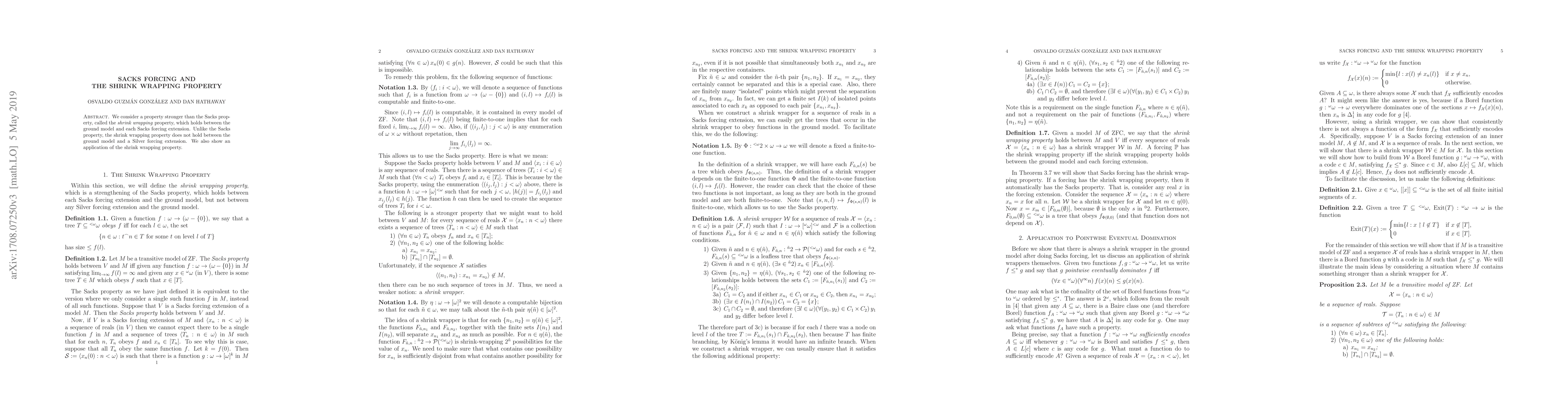 We consider a property stronger than the Sacks property, called the shrink wrapping property, which holds between the ground model and each Sacks forcing extension. Unlike the Sacks property, the shrink wrapping property does not hold between the ground model and a Silver forcing extension. We also show an application of the shrink wrapping property.