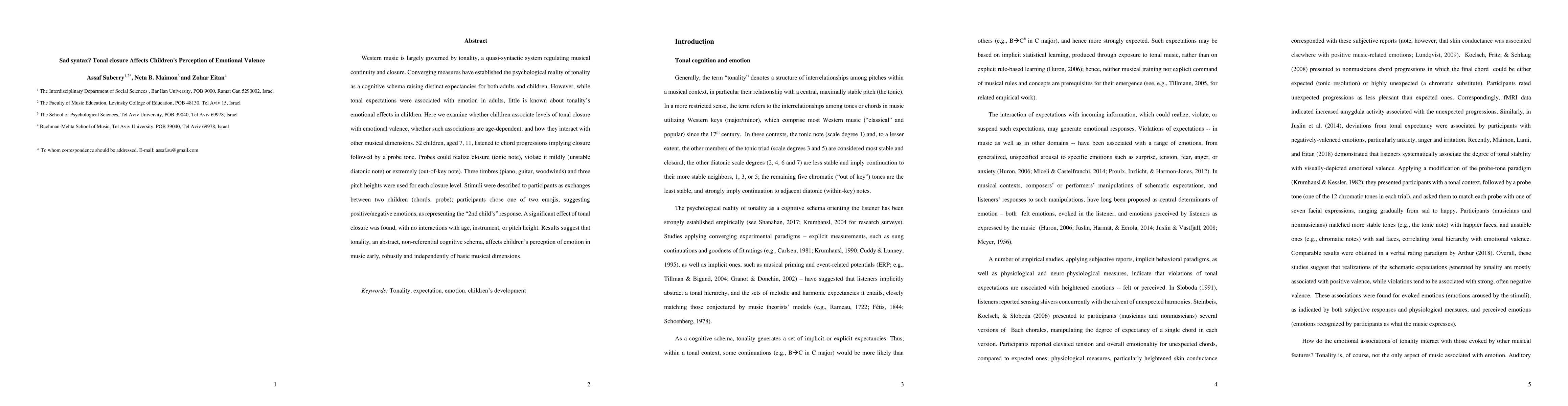 This study investigates whether children associate levels of tonal closure in music with emotional valence, finding that tonal expectations significantly influence children's perception of emotion, regardless of age, instrument, or pitch. The results suggest that tonality affects children's emotional perception early and robustly.