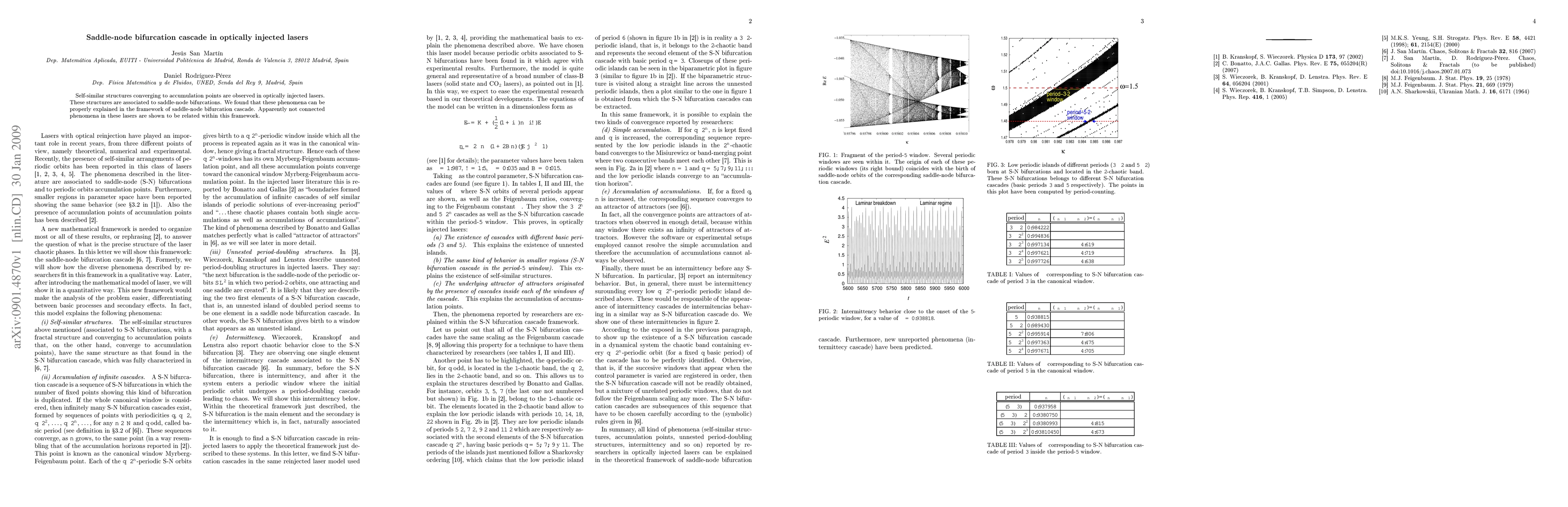 This research paper investigates saddle-node bifurcation cascades in optically injected lasers, revealing self-similar structures converging to accumulation points that can be explained by this bifurcation framework, linking seemingly unrelated phenomena within the system.