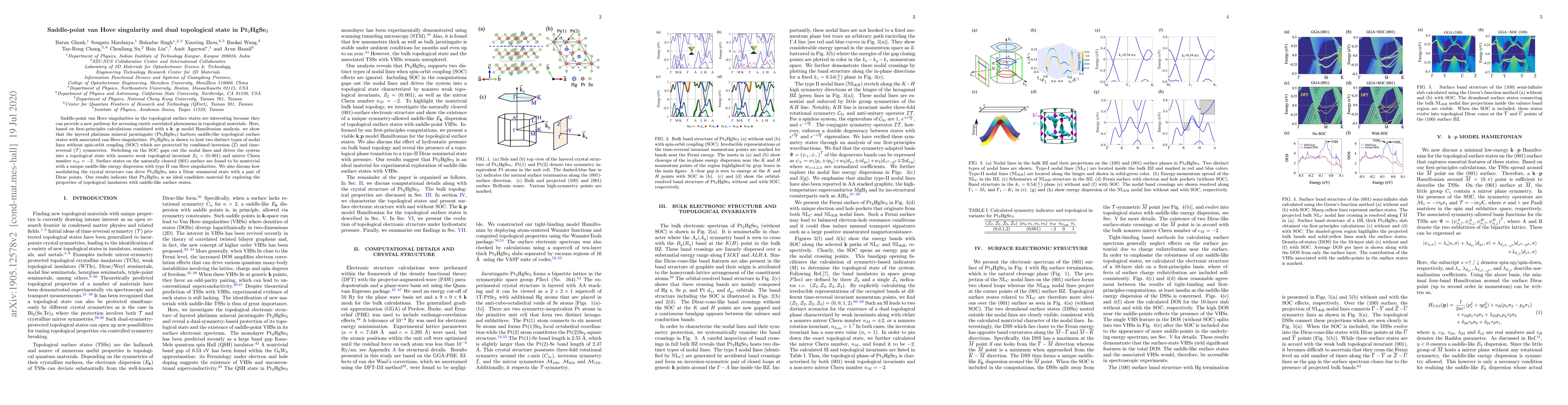 Pt$_2$HgSe$_3$ exhibits saddle-point van Hove singularities in its topological surface states, leading to exotic correlated phenomena. When spin-orbit coupling is activated, it transforms into a topological insulator with a nontrivial weak topological invariant and unique saddle-like surface states.