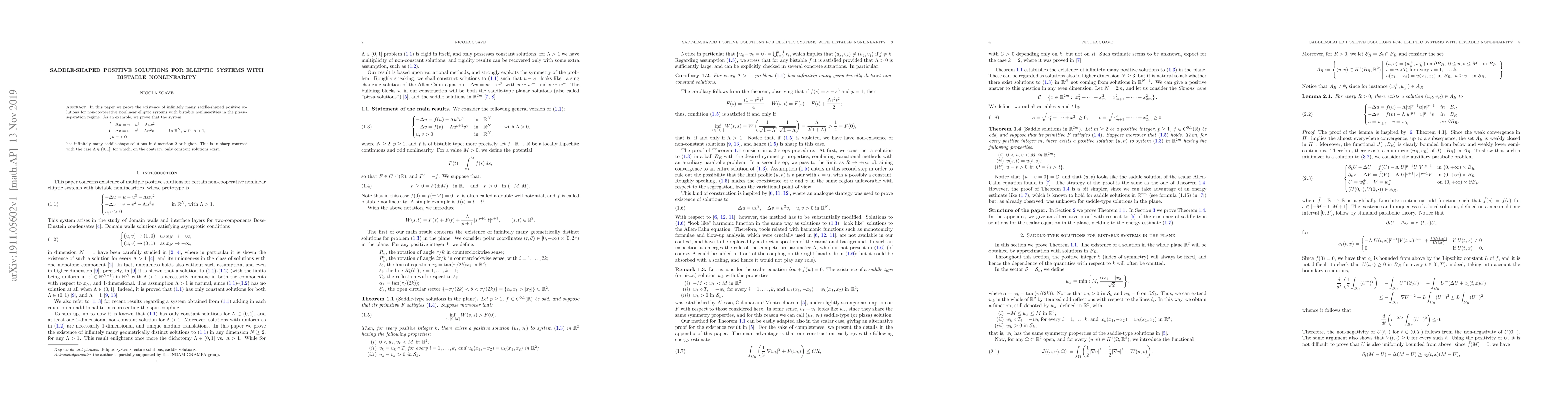 This paper proves the existence of infinitely many saddle-shaped positive solutions for a specific non-cooperative nonlinear elliptic system with bistable nonlinearity, contrasting with constant solutions in other regimes.