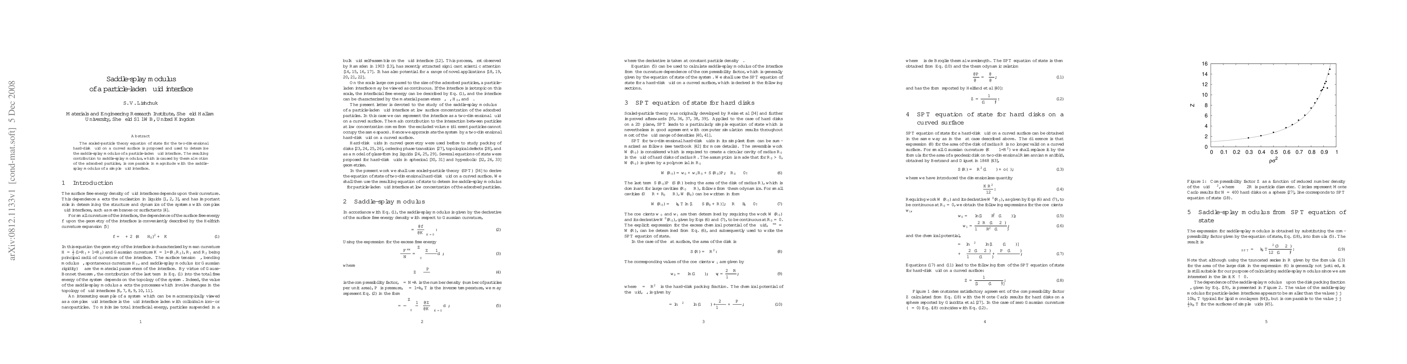 The scaled-particle theory equation of state for the two-dimensional hard-disk fluid on a curved surface is proposed and used to determine the saddle-splay modulus of a particle-laden fluid interface. The resulting contribution to saddle-splay modulus, which is caused by thermal motion of the adsorbed particles, is comparable in magnitude with the saddle-splay modulus of a simple fluid interface.