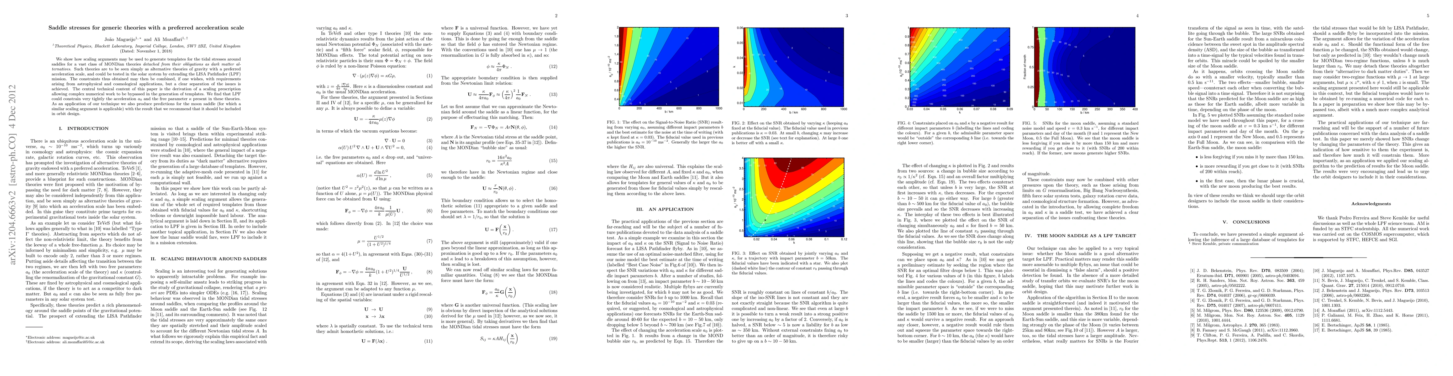 We show how scaling arguments may be used to generate templates for the tidal stresses around saddles for a vast class of MONDian theories {\it detached from their obligations as dark matter alternatives}. Such theories are to be seen simply as alternative theories of gravity with a preferred acceleration scale, and could be tested in the solar system by extending the LISA Pathfinder (LPF) mission. The constraints thus obtained may then be combined, if one wishes, with requirements arising from astrophysical and cosmological applications, but a clear separation of the issues is achieved. The central technical content of this paper is the derivation of a scaling prescription allowing complex numerical work to be bypassed in the generation of templates. We find that LPF could constrain very tightly the acceleration $a_0$ and the free parameter $\kappa$ present in these theories. As an application of our technique we also produce predictions for the moon saddle (for which a similar scaling argument is applicable) with the result that we recommend that it should be included in orbit design.