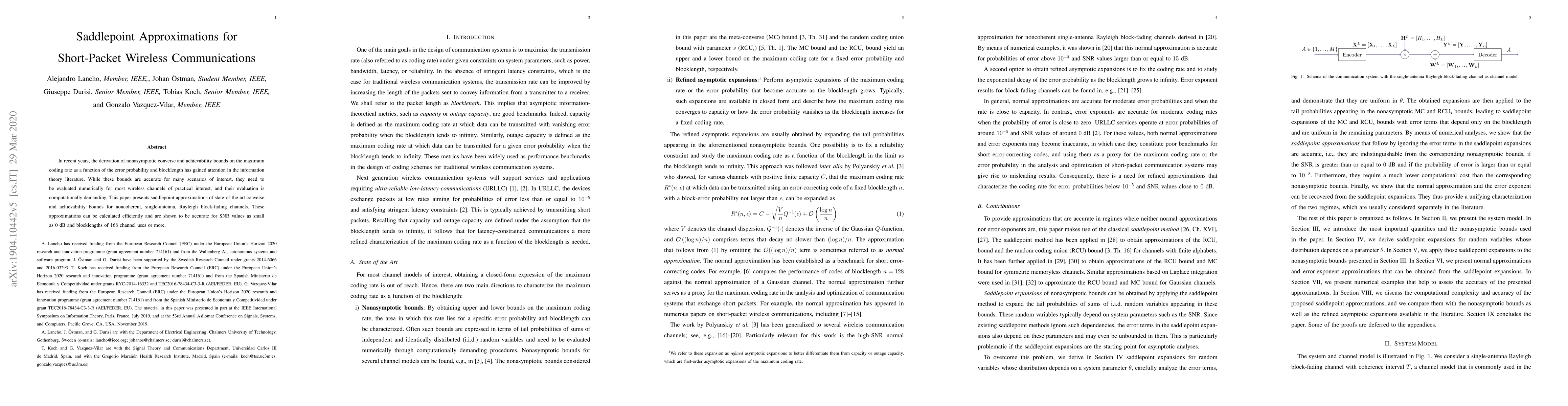 This paper introduces saddlepoint approximations for deriving nonasymptotic bounds on the maximum coding rate in short-packet wireless communications, offering a computationally efficient alternative to traditional numerical methods for evaluating these bounds in practical Rayleigh block-fading channels. The approximations are shown to be accurate for low SNR values and blocklengths starting from 168 channel uses.