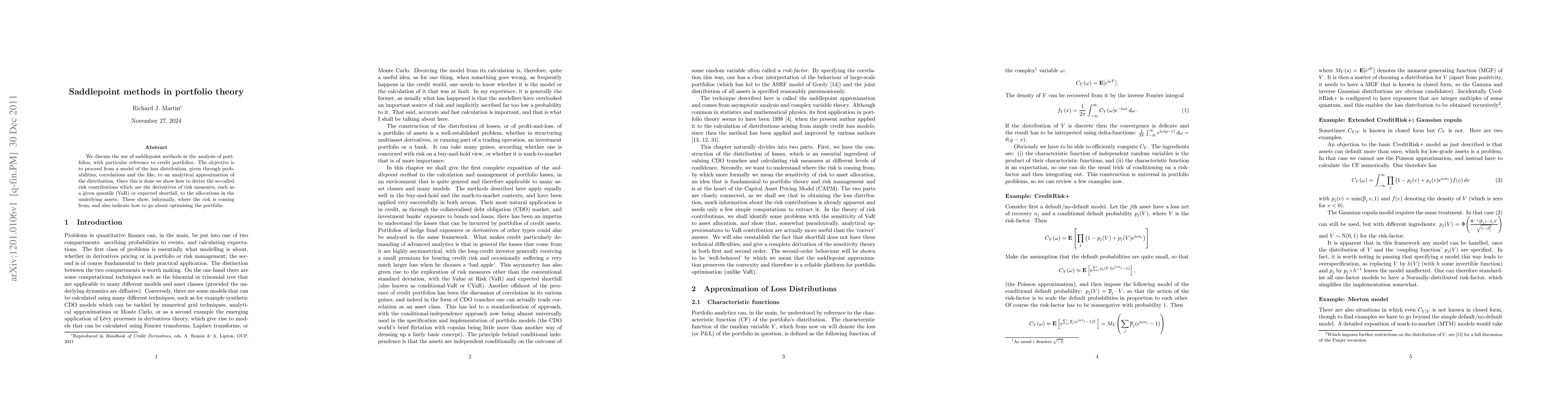 This paper explores saddlepoint methods for analyzing credit portfolios, aiming to derive an analytical approximation of the loss distribution. It also demonstrates how to compute risk contributions, which help identify risk sources and guide portfolio optimization.