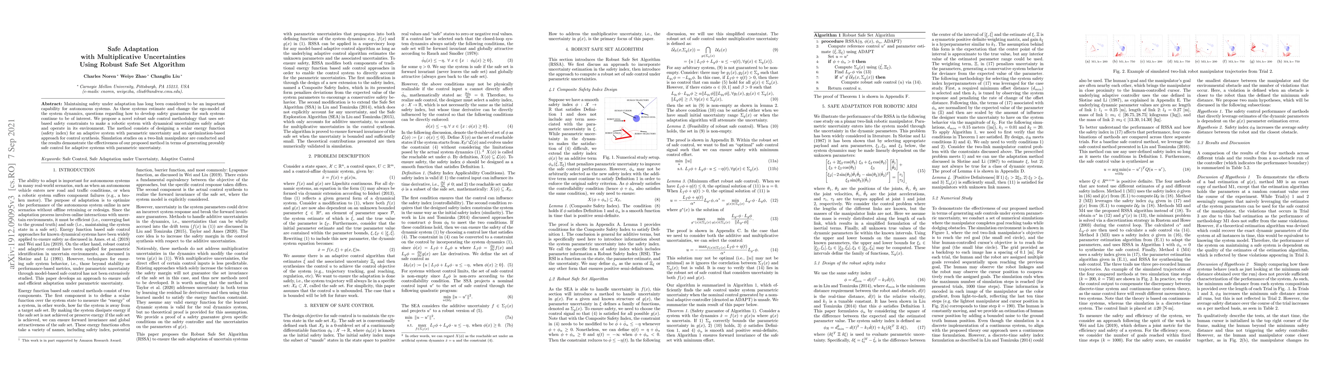 A new method for ensuring safety in autonomous systems that adapt to changing environments is proposed, using set-based safety constraints to generate provably safe control.