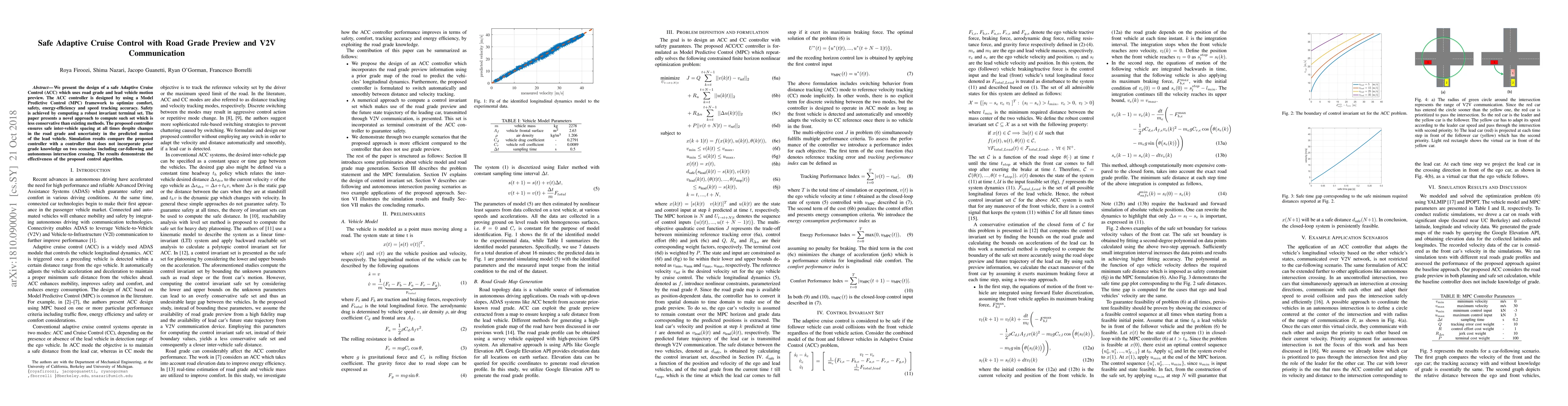A new Adaptive Cruise Control system uses road grade preview to ensure safe distances despite changes in road grade and lead vehicle uncertainty.