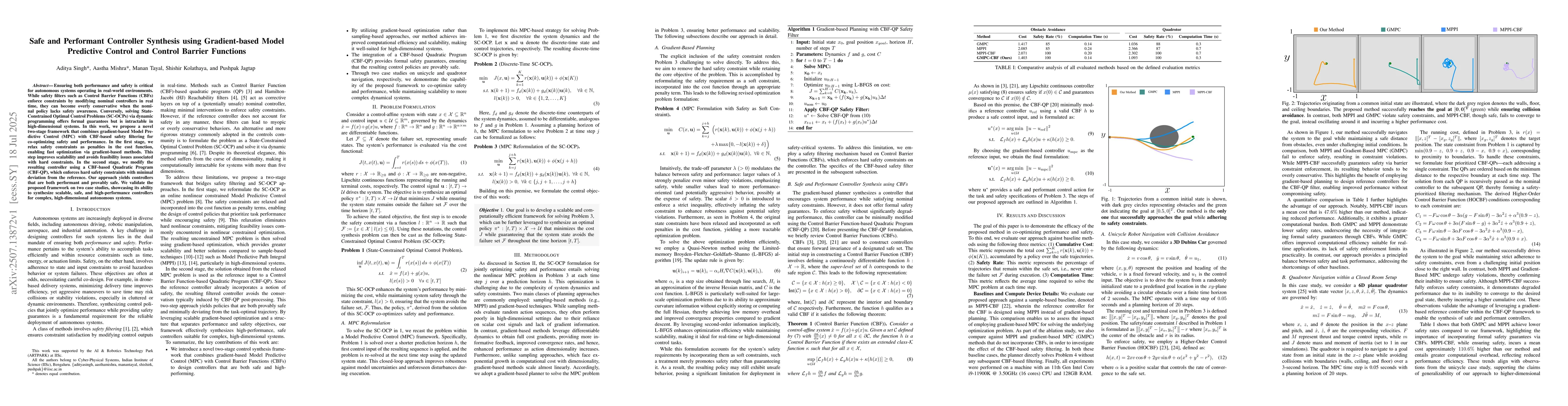 Ensuring both performance and safety is critical for autonomous systems operating in real-world environments. While safety filters such as Control Barrier Functions (CBFs) enforce constraints by modifying nominal controllers in real time, they can become overly conservative when the nominal policy lacks safety awareness. Conversely, solving State-Constrained Optimal Control Problems (SC-OCPs) via dynamic programming offers formal guarantees but is intractable in high-dimensional systems. In this work, we propose a novel two-stage framework that combines gradient-based Model Predictive Control (MPC) with CBF-based safety filtering for co-optimizing safety and performance. In the first stage, we relax safety constraints as penalties in the cost function, enabling fast optimization via gradient-based methods. This step improves scalability and avoids feasibility issues associated with hard constraints. In the second stage, we modify the resulting controller using a CBF-based Quadratic Program (CBF-QP), which enforces hard safety constraints with minimal deviation from the reference. Our approach yields controllers that are both performant and provably safe. We validate the proposed framework on two case studies, showcasing its ability to synthesize scalable, safe, and high-performance controllers for complex, high-dimensional autonomous systems.