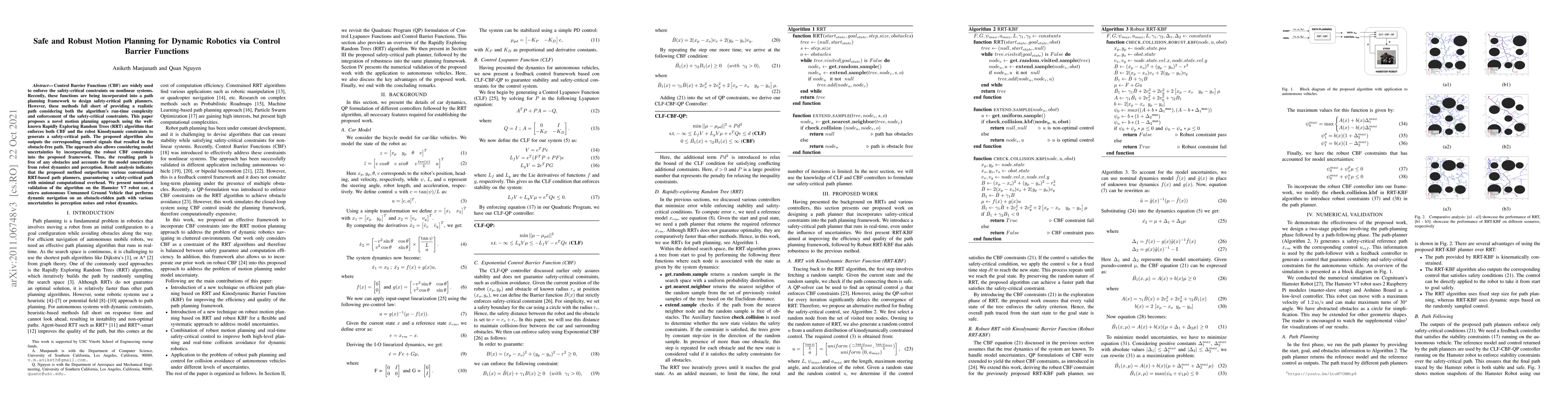 This paper proposes a novel motion planning method using RRT and Control Barrier Functions (CBF) to generate safe, obstacle-free paths for dynamic robots, while considering model uncertainties and minimizing computational overhead. The approach outperforms conventional RRT-based planners, validated on a micro autonomous robot navigating complex environments.