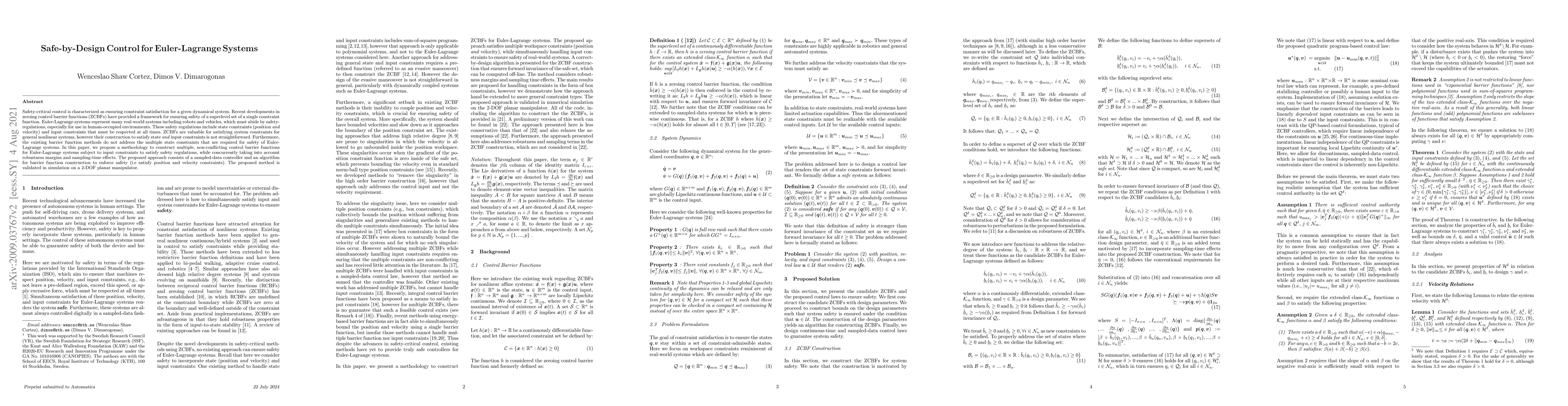 This paper proposes a methodology for constructing multiple, non-conflicting control barrier functions to ensure safety for Euler-Lagrange systems, addressing state and input constraints. The approach includes a sampled-data controller and an algorithm validated in simulation on a 2-DOF planar manipulator.