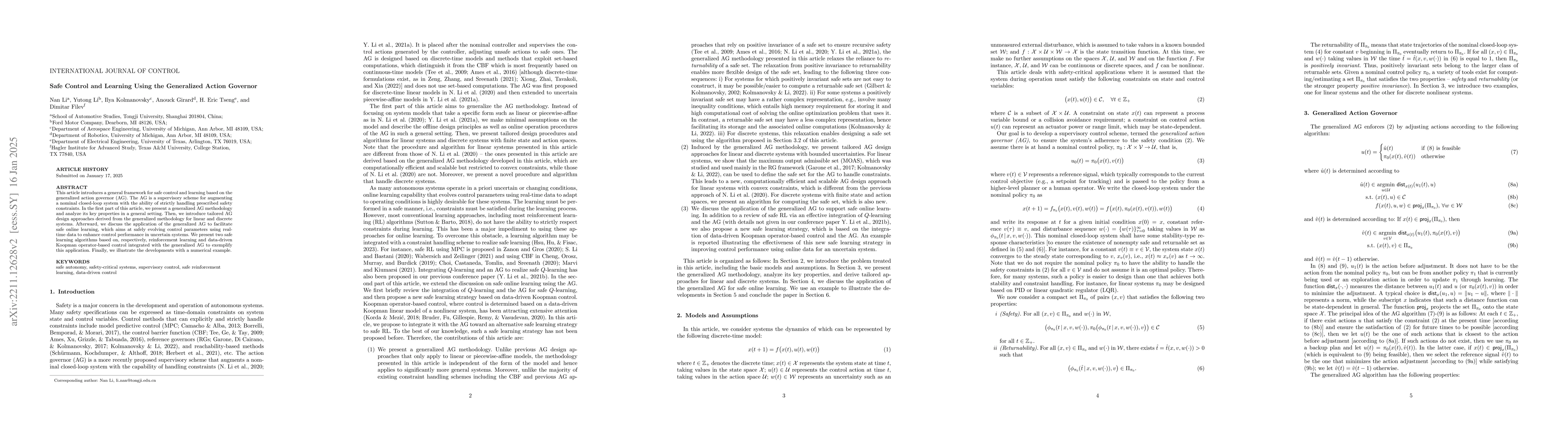 This paper introduces the Generalized Action Governor, which is a supervisory scheme for augmenting a nominal closed-loop system with the capability of strictly handling constraints. After presenting its theory for general systems and introducing tailored design approaches for linear and discrete systems, we discuss its application to safe online learning, which aims to safely evolve control parameters using real-time data to improve performance for uncertain systems. In particular, we propose two safe learning algorithms based on integration of reinforcement learning/data-driven Koopman operator-based control with the generalized action governor. The developments are illustrated with a numerical example.