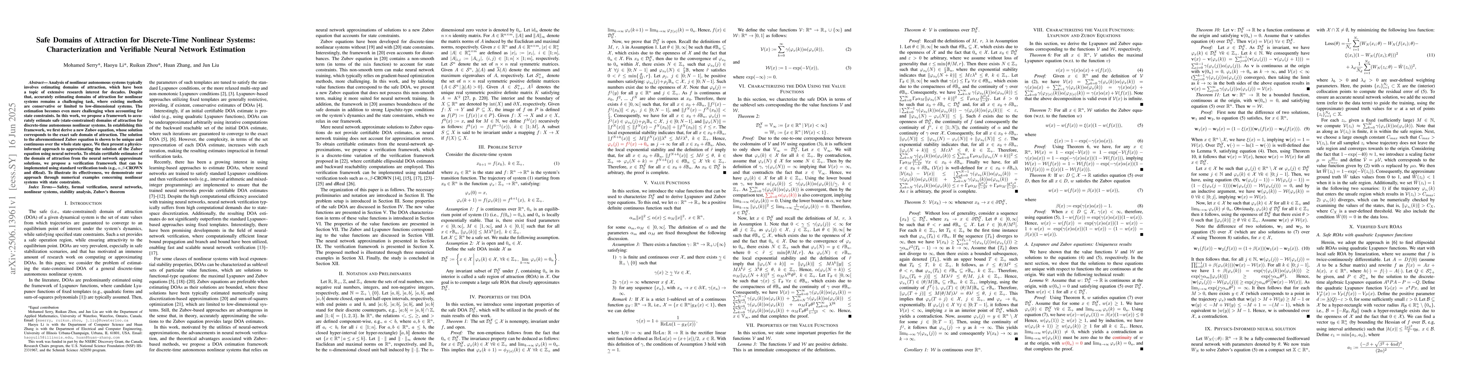 Analysis of nonlinear autonomous systems typically involves estimating domains of attraction, which have been a topic of extensive research interest for decades. Despite that, accurately estimating domains of attraction for nonlinear systems remains a challenging task, where existing methods are conservative or limited to low-dimensional systems. The estimation becomes even more challenging when accounting for state constraints. In this work, we propose a framework to accurately estimate safe (state-constrained) domains of attraction for discrete-time autonomous nonlinear systems. In establishing this framework, we first derive a new Zubov equation, whose solution corresponds to the exact safe domain of attraction. The solution to the aforementioned Zubov equation is shown to be unique and continuous over the whole state space. We then present a physics-informed approach to approximating the solution of the Zubov equation using neural networks. To obtain certifiable estimates of the domain of attraction from the neural network approximate solutions, we propose a verification framework that can be implemented using standard verification tools (e.g., $\alpha,\!\beta$-CROWN and dReal). To illustrate its effectiveness, we demonstrate our approach through numerical examples concerning nonlinear systems with state constraints.