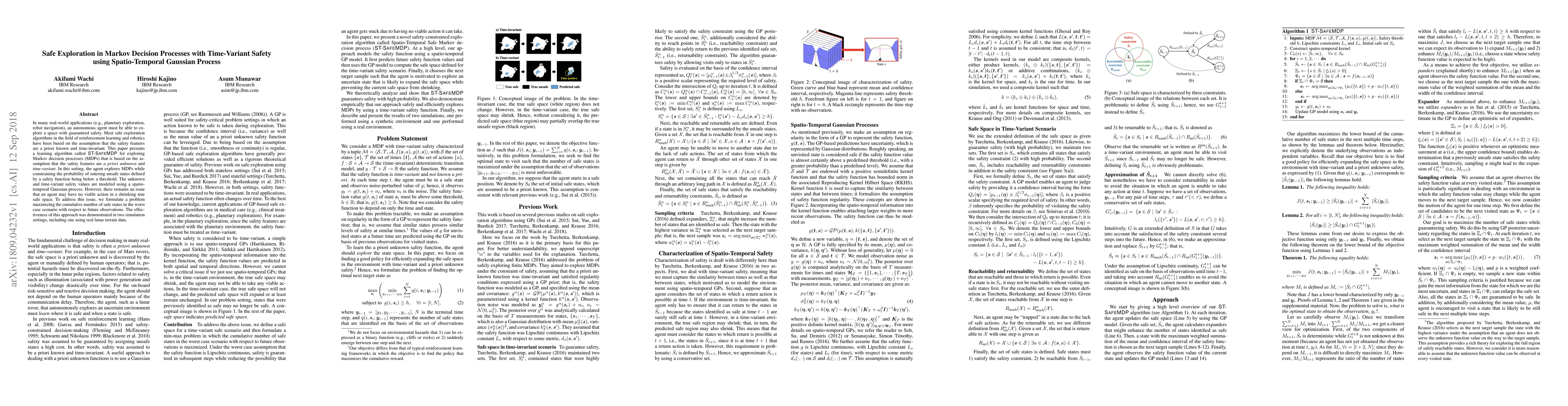 This paper introduces ST-SafeMDP, a novel algorithm for safe exploration in Markov decision processes where safety features are unknown and time-variant. It models these features using a spatio-temporal Gaussian process and addresses the challenge of shrinking safe spaces by maximizing the cumulative number of safe states. The method was validated in simulations using real lunar terrain data.