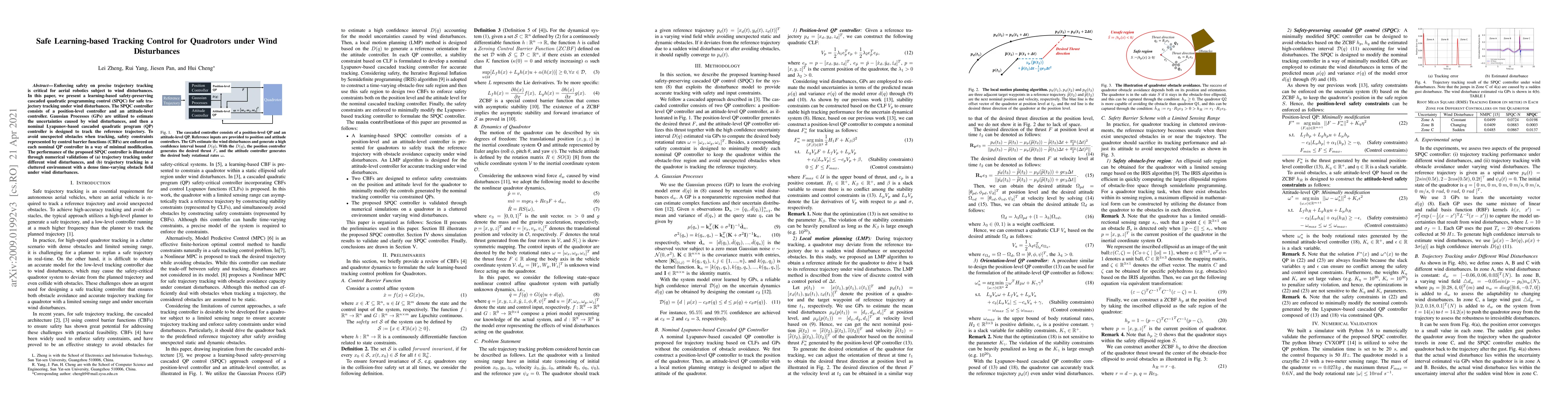 This paper proposes a learning-based safety-preserving cascaded quadratic programming control (SPQC) for quadrotors to ensure safe trajectory tracking amidst wind disturbances. Utilizing Gaussian Processes to estimate wind uncertainties and enforcing safety constraints via control barrier functions, the SPQC controller demonstrates effective performance in both wind-affected and obstacle-laden environments.