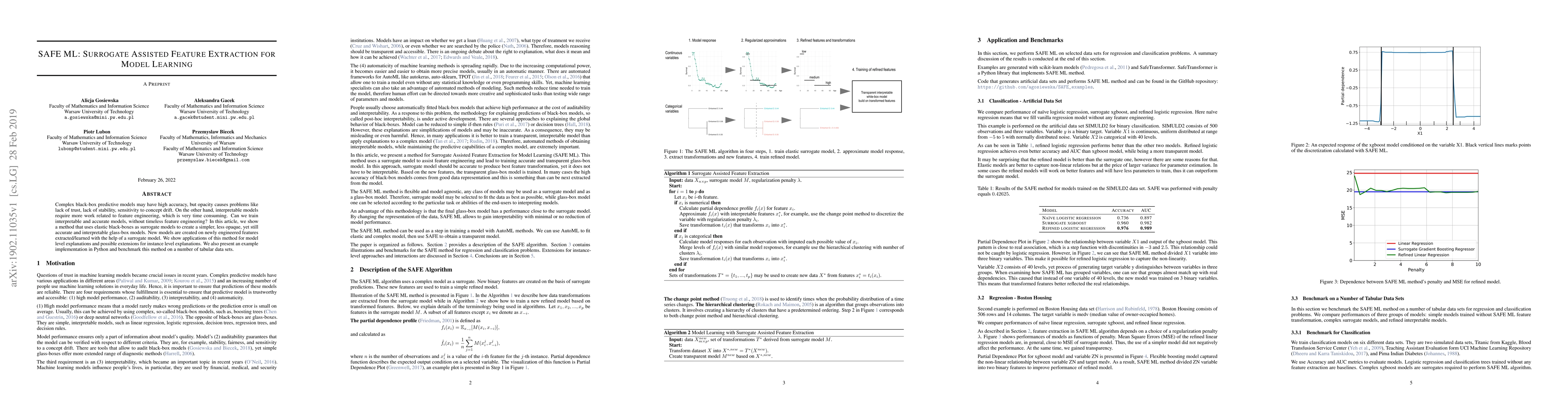 This paper proposes SAFE ML, a method using surrogate models to extract features that enable the creation of interpretable yet accurate predictive models, bypassing the need for time-consuming feature engineering. The approach demonstrates applications for model-level explanations and potential extensions for instance-level explanations, with a Python implementation and benchmarks on tabular datasets.