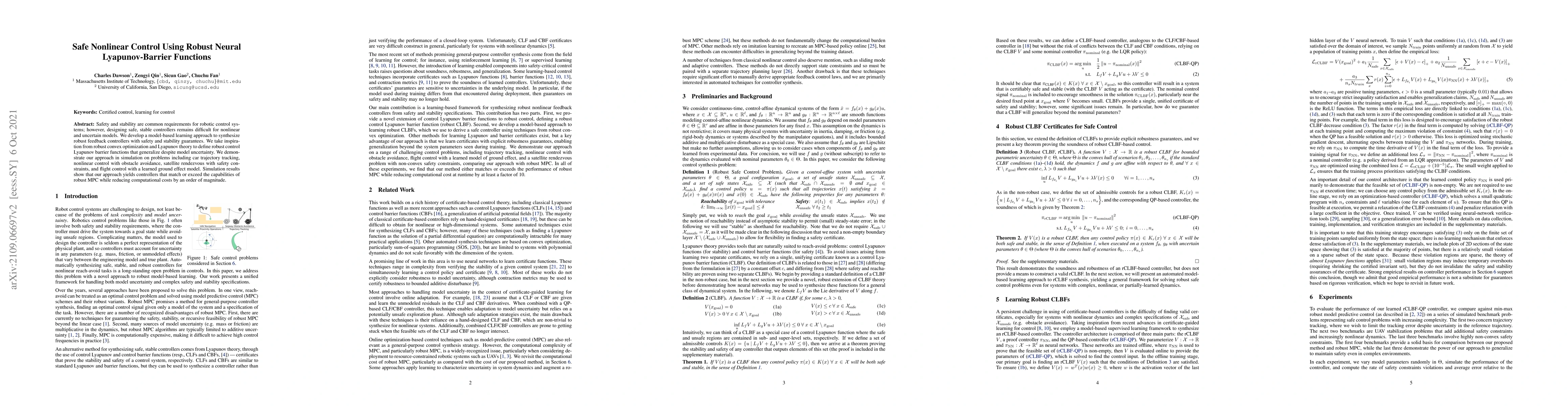 This paper proposes a model-based learning method to synthesize robust nonlinear controllers with safety and stability guarantees using neural Lyapunov-barrier functions. The approach demonstrates effectiveness in various simulations, outperforming traditional robust MPC in computational efficiency while maintaining or exceeding performance.
