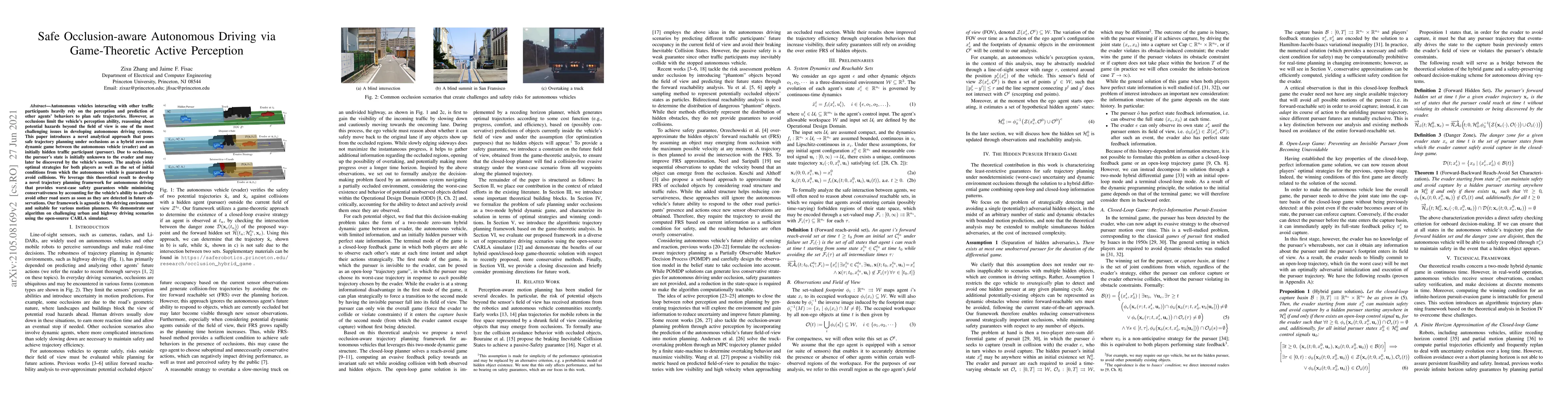Researchers develop a novel framework for safe autonomous driving under occlusions by modeling the interaction as a game-theoretic dynamic game, providing worst-case safety guarantees while minimizing conservativeness.