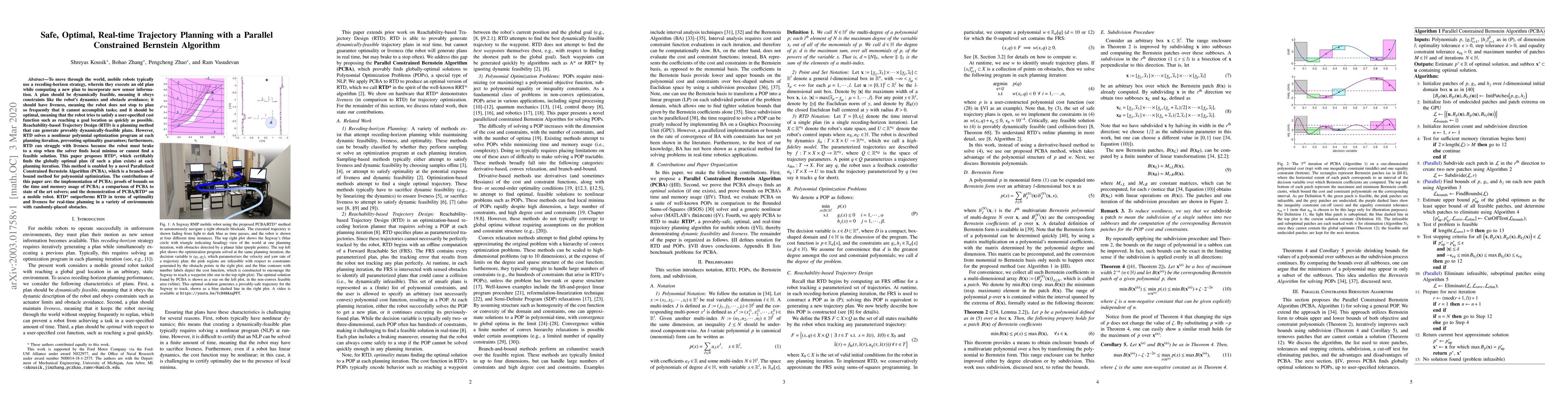 To move through the world, mobile robots typically use a receding-horizon strategy, wherein they execute an old plan while computing a new plan to incorporate new sensor information. A plan should be dynamically feasible, meaning it obeys constraints like the robot's dynamics and obstacle avoidance; it should have liveness, meaning the robot does not stop to plan so frequently that it cannot accomplish tasks; and it should be optimal, meaning that the robot tries to satisfy a user-specified cost function such as reaching a goal location as quickly as possible. Reachability-based Trajectory Design (RTD) is a planning method that can generate provably dynamically-feasible plans. However, RTD solves a nonlinear polynmial optimization program at each planning iteration, preventing optimality guarantees; furthermore, RTD can struggle with liveness because the robot must brake to a stop when the solver finds local minima or cannot find a feasible solution. This paper proposes RTD*, which certifiably finds the globally optimal plan (if such a plan exists) at each planning iteration. This method is enabled by a novel Parallelized Constrained Bernstein Algorithm (PCBA), which is a branch-and-bound method for polynomial optimization. The contributions of this paper are: the implementation of PCBA; proofs of bounds on the time and memory usage of PCBA; a comparison of PCBA to state of the art solvers; and the demonstration of PCBA/RTD* on a mobile robot. RTD* outperforms RTD in terms of optimality and liveness for real-time planning in a variety of environments with randomly-placed obstacles.
