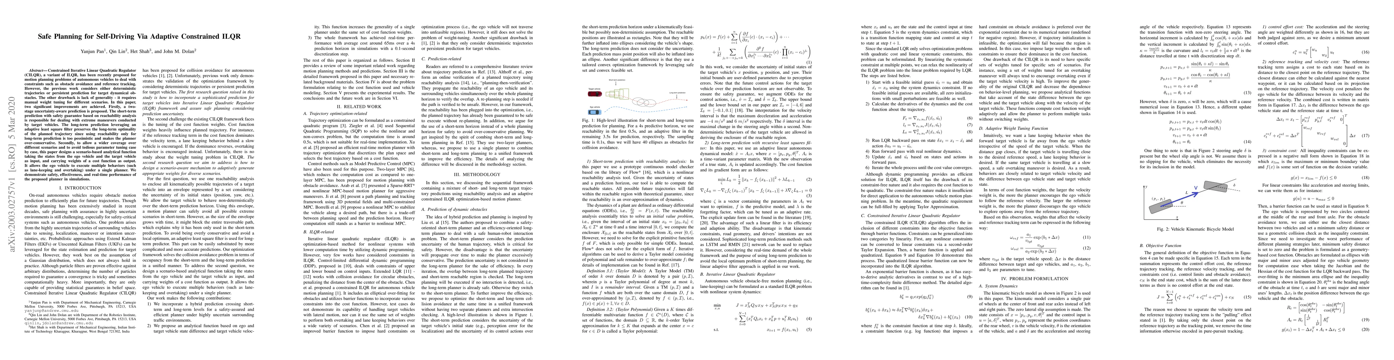 Constrained Iterative Linear Quadratic Regulator (CILQR), a variant of ILQR, has been recently proposed for motion planning problems of autonomous vehicles to deal with constraints such as obstacle avoidance and reference tracking. However, the previous work considers either deterministic trajectories or persistent prediction for target dynamical obstacles. The other drawback is lack of generality - it requires manual weight tuning for different scenarios. In this paper, two significant improvements are achieved. Firstly, a two-stage uncertainty-aware prediction is proposed. The short-term prediction with safety guarantee based on reachability analysis is responsible for dealing with extreme maneuvers conducted by target vehicles. The long-term prediction leveraging an adaptive least square filter preserves the long-term optimality of the planned trajectory since using reachability only for long-term prediction is too pessimistic and makes the planner over-conservative. Secondly, to allow a wider coverage over different scenarios and to avoid tedious parameter tuning case by case, this paper designs a scenario-based analytical function taking the states from the ego vehicle and the target vehicle as input, and carrying weights of a cost function as output. It allows the ego vehicle to execute multiple behaviors (such as lane-keeping and overtaking) under a single planner. We demonstrate safety, effectiveness, and real-time performance of the proposed planner in simulations.