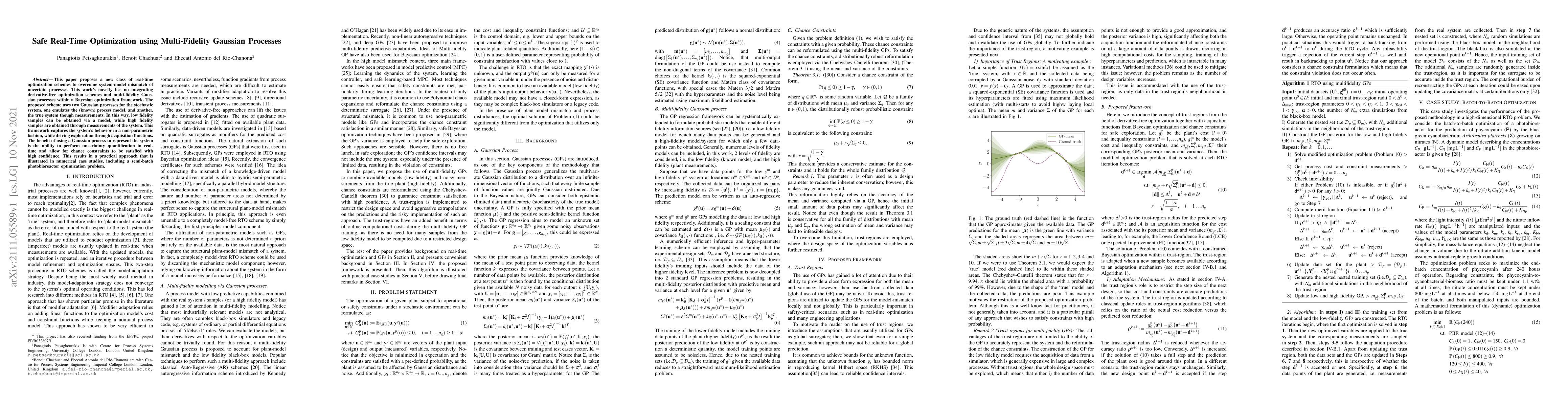 This paper introduces a real-time optimization framework that leverages multi-fidelity Gaussian processes to address system-model mismatches. It combines derivative-free optimization with Bayesian methods, using two Gaussian processes to emulate both a model and the true system, enabling real-time uncertainty quantification and satisfaction of chance constraints.