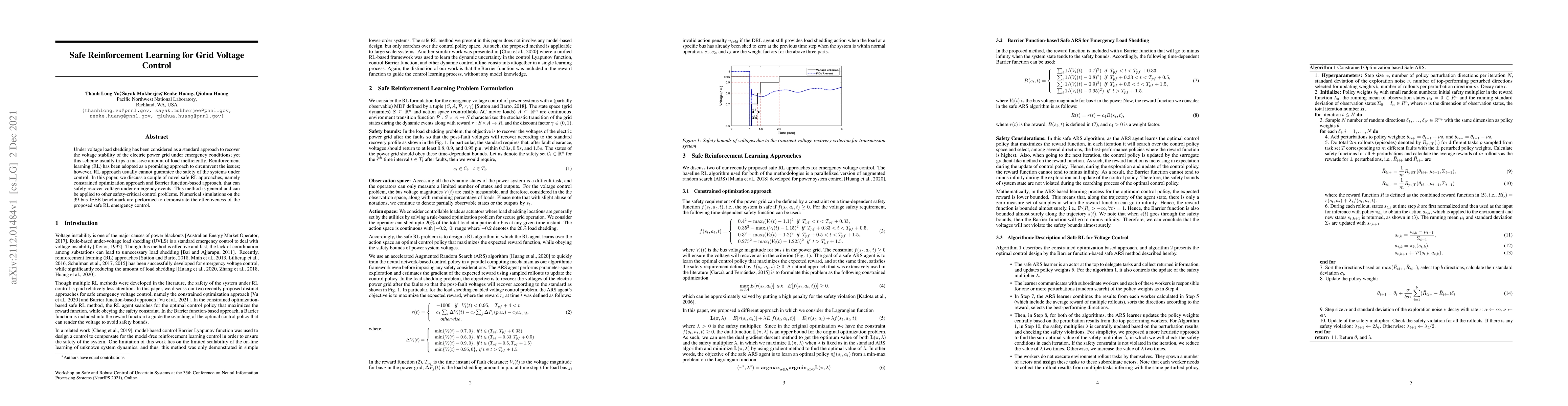 The paper proposes two safe reinforcement learning (RL) approaches for grid voltage control during emergencies: constrained optimization and Barrier function-based methods. These methods ensure system safety by incorporating constraints and Barrier functions into the RL reward function, preventing state violations of safety bounds.