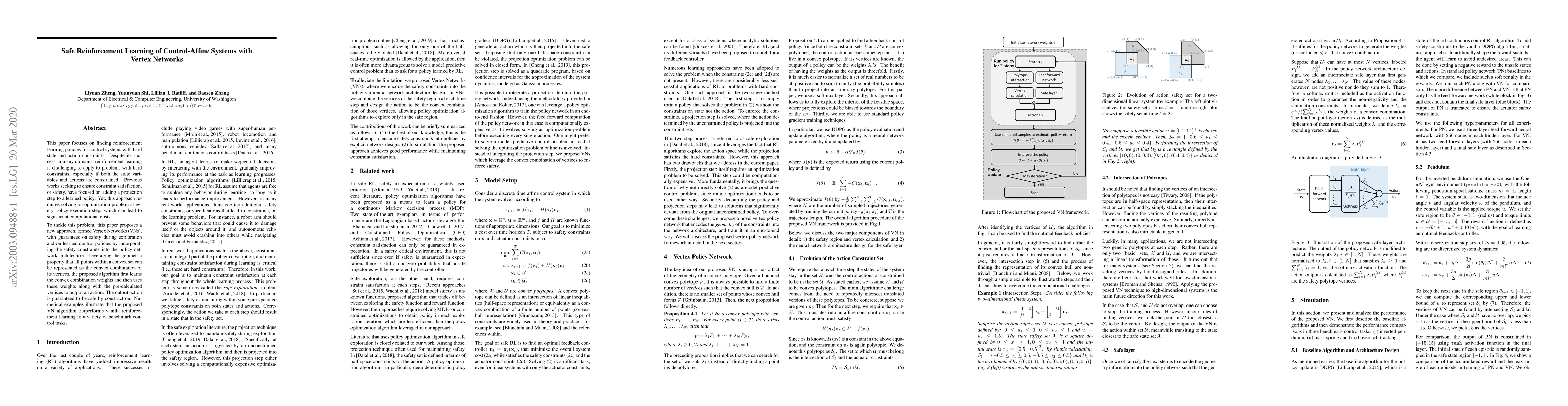 This paper introduces Vertex Networks (VNs) to safely learn reinforcement learning policies for control-affine systems with hard state and action constraints, ensuring safe actions through a convex combination of pre-calculated vertices, outperforming traditional methods in benchmark tasks.