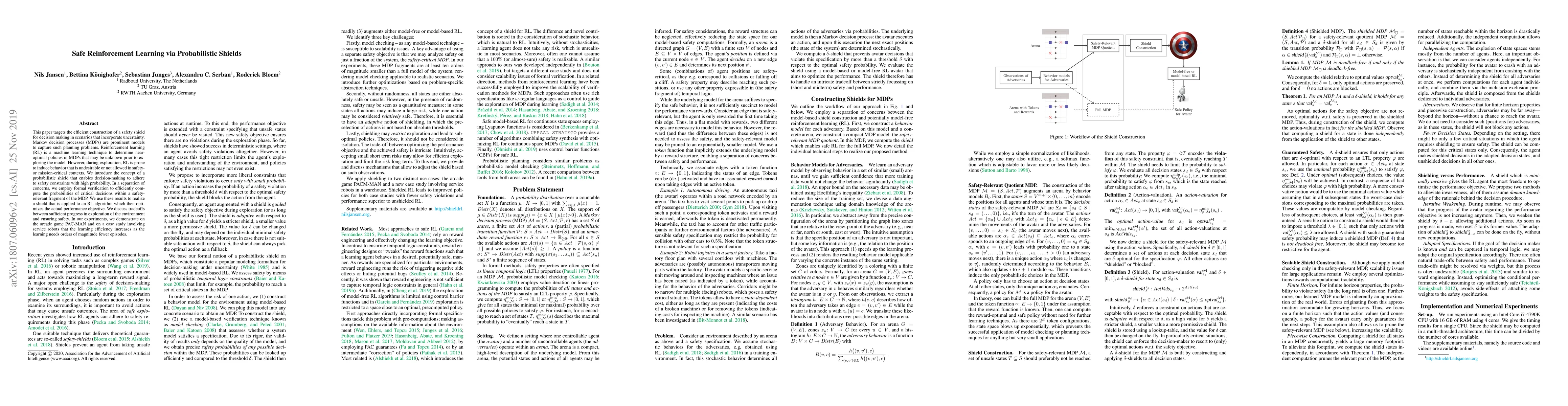 This paper proposes a probabilistic shield mechanism to enhance the safety of reinforcement learning in uncertain environments by ensuring decisions adhere to safety constraints. The shield leverages formal verification to compute critical decision probabilities, enabling safe exploration while maintaining learning efficiency.