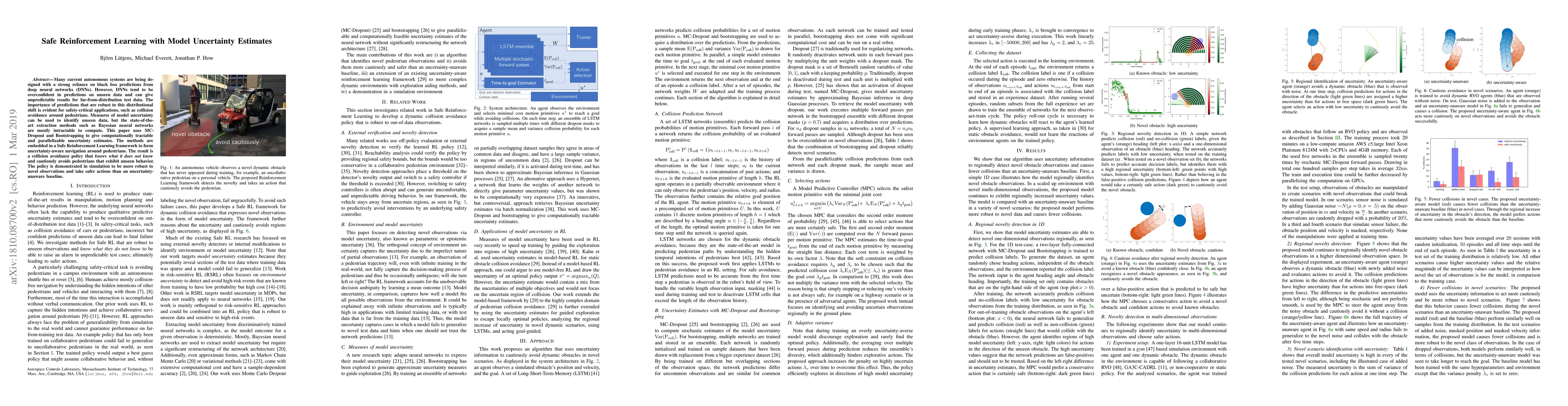 This paper proposes a Safe Reinforcement Learning framework that incorporates model uncertainty estimates using MC-Dropout and Bootstrapping to enhance navigation and collision avoidance in autonomous systems, demonstrating improved robustness and safety in simulations.