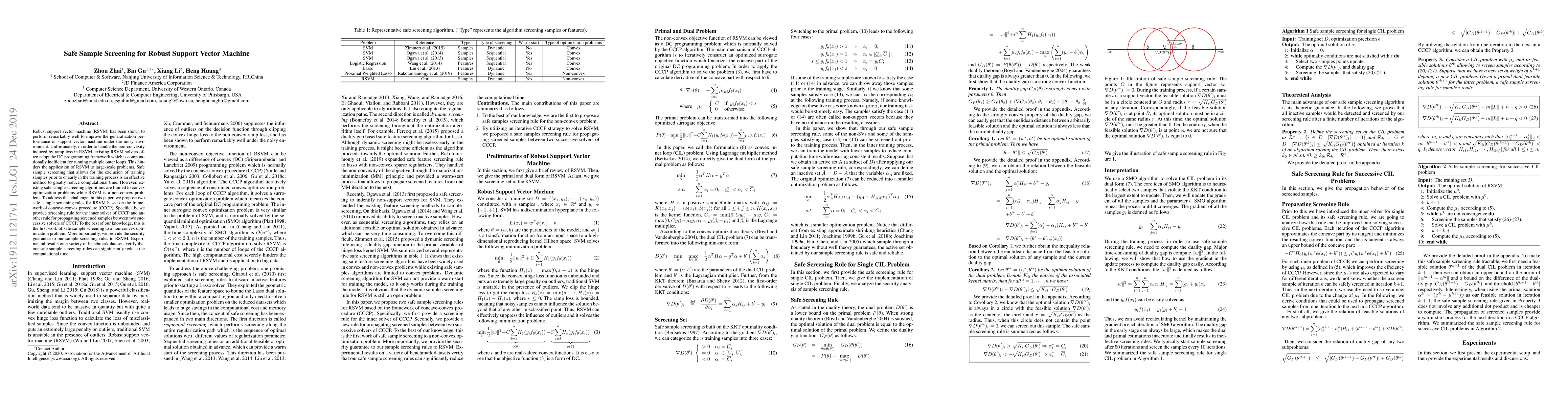 This paper proposes two safe sample screening rules for robust support vector machines (RSVM) to address computational inefficiencies in existing solvers. The rules, based on the concave-convex procedure framework, enable the exclusion of training samples early in the training process, significantly reducing computational time while maintaining security guarantees for non-convex optimization problems. Experimental results show substantial performance improvements on benchmark datasets.