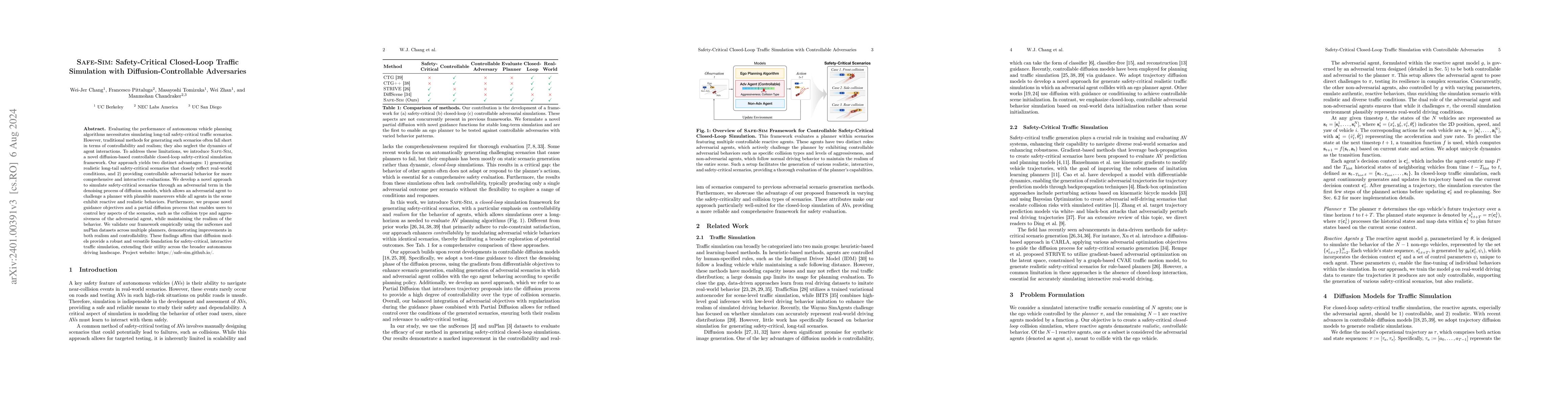 SAFE-SIM introduces a diffusion-based simulation framework for generating controllable, realistic safety-critical traffic scenarios, allowing for interactive evaluations of autonomous vehicle planning algorithms by simulating adversarial maneuvers and dynamic agent interactions. Empirical validation using the NuScenes dataset highlights the framework's enhanced realism and controllability.