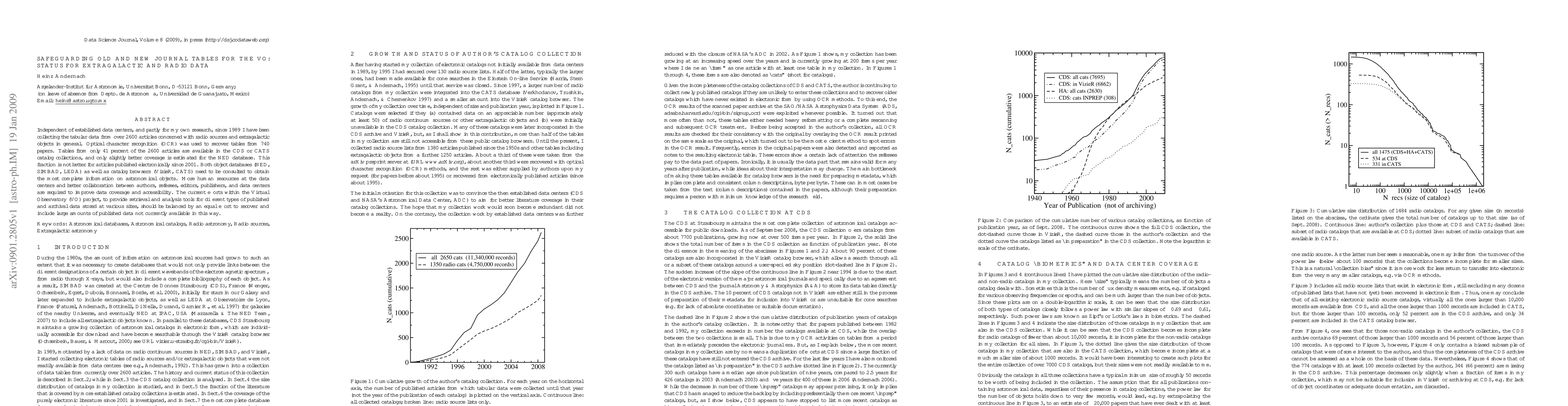 Independent of established data centers, and partly for my own research, since 1989 I have been collecting the tabular data from over 2600 articles concerned with radio sources and extragalactic objects in general. Optical character recognition (OCR) was used to recover tables from 740 papers. Tables from only 41 percent of the 2600 articles are available in the CDS or CATS catalog collections, and only slightly better coverage is estimated for the NED database. This fraction is not better for articles published electronically since 2001. Both object databases (NED, SIMBAD, LEDA) as well as catalog browsers (VizieR, CATS) need to be consulted to obtain the most complete information on astronomical objects. More human resources at the data centers and better collaboration between authors, referees, editors, publishers, and data centers are required to improve data coverage and accessibility. The current efforts within the Virtual Observatory (VO) project, to provide retrieval and analysis tools for different types of published and archival data stored at various sites, should be balanced by an equal effort to recover and include large amounts of published data not currently available in this way.