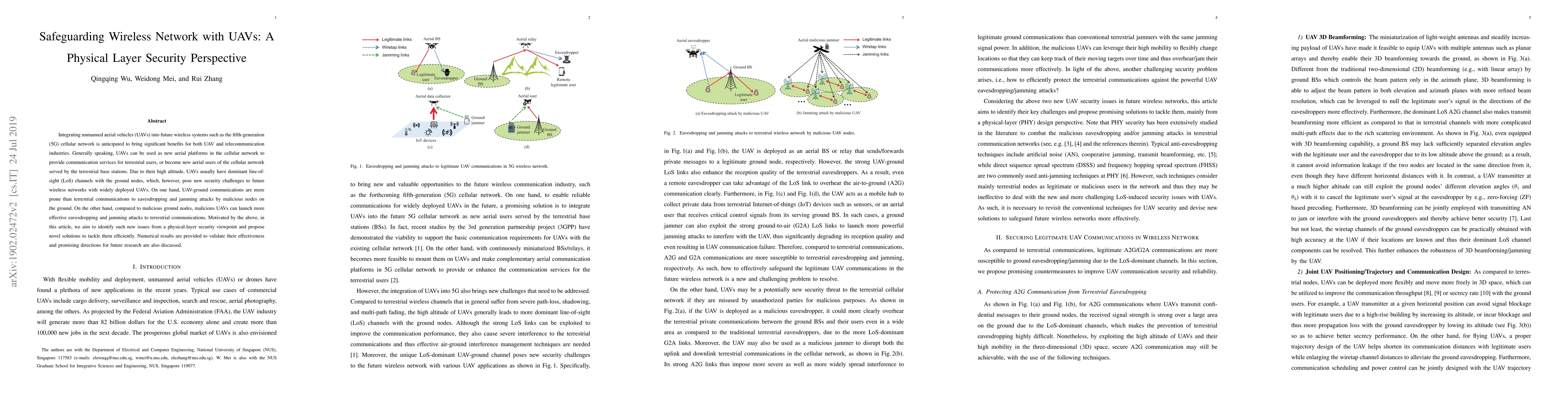 This paper proposes solutions to secure wireless networks using unmanned aerial vehicles (UAVs) from physical layer security threats, aiming to protect both terrestrial users and UAVs.