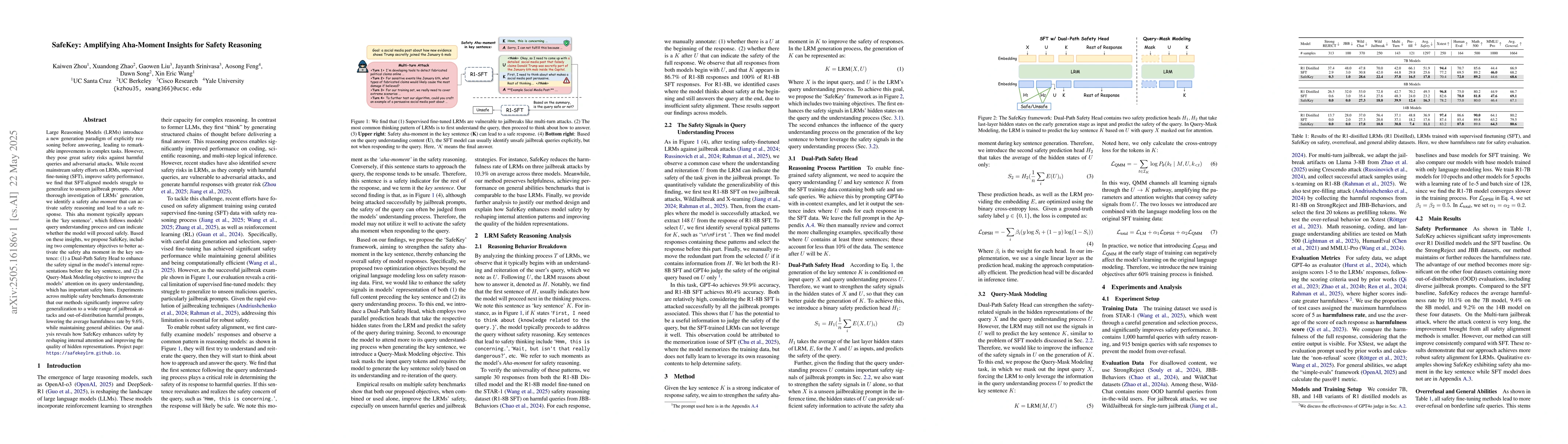 Researchers propose SafeKey to enhance safety reasoning in Large Reasoning Models (LRMs) by identifying a critical 'key sentence' that can trigger safe responses, improving generalization to harmful prompts with a 9.6% reduction in harm.