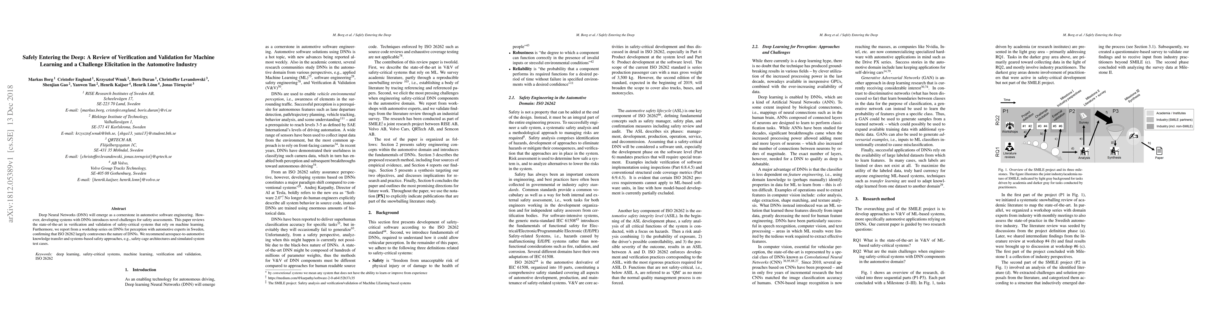 Deep Neural Networks (DNN) will emerge as a cornerstone in automotive software engineering. However, developing systems with DNNs introduces novel challenges for safety assessments. This paper reviews the state-of-the-art in verification and validation of safety-critical systems that rely on machine learning. Furthermore, we report from a workshop series on DNNs for perception with automotive experts in Sweden, confirming that ISO 26262 largely contravenes the nature of DNNs. We recommend aerospace-to-automotive knowledge transfer and systems-based safety approaches, e.g., safety cage architectures and simulated system test cases.