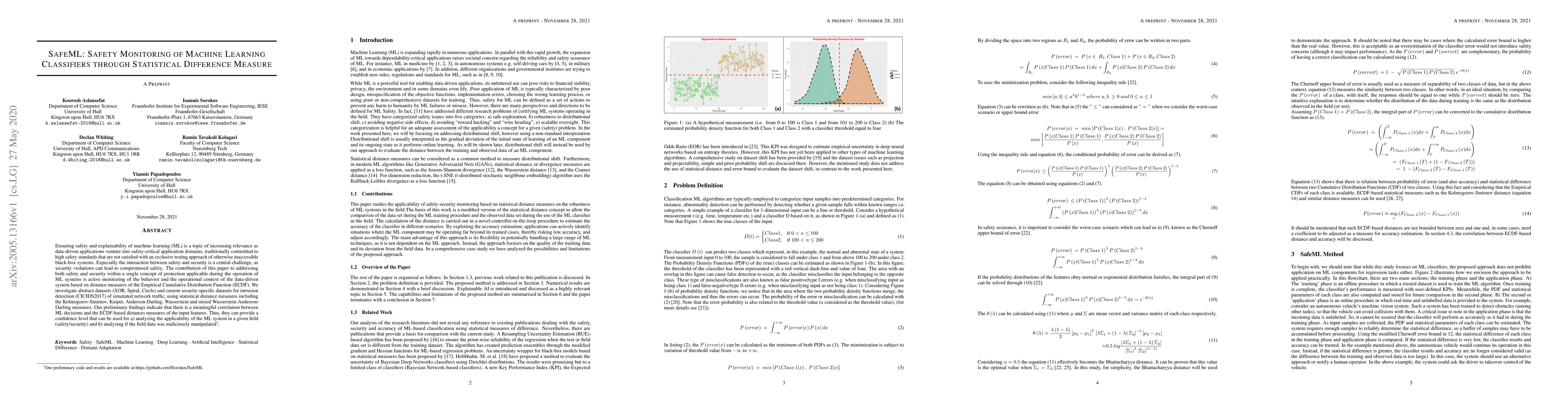 This paper introduces SafeML, a method to monitor machine learning classifiers for safety and security through statistical difference measures, aiming to detect invalid application contexts and prevent security violations.