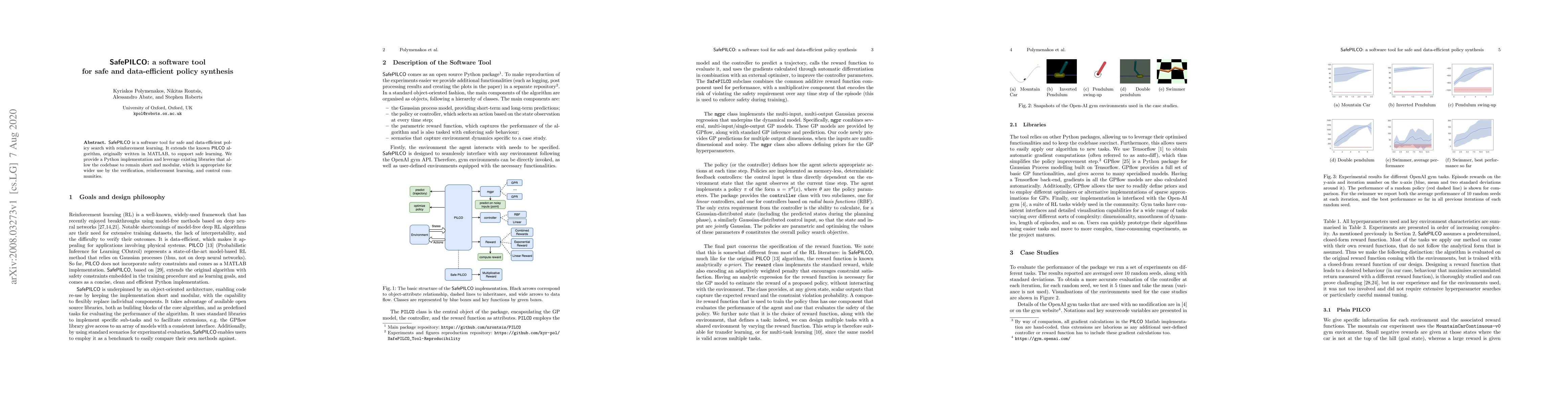 SafePILCO is a software tool that enables safe and data-efficient policy synthesis using reinforcement learning, extending the PILCO algorithm for safety while maintaining modularity and efficiency.