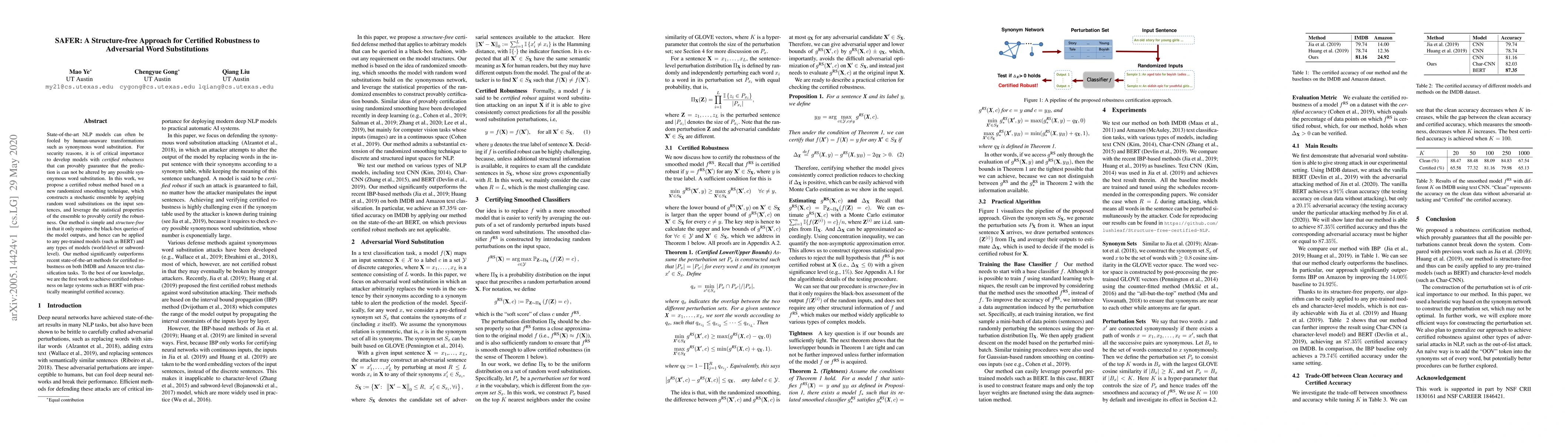 This paper proposes a structure-free, randomized smoothing technique to achieve certified robustness against adversarial word substitutions in NLP models. The method constructs a stochastic ensemble via random word substitutions and leverages statistical properties to certify robustness, outperforming recent state-of-the-art methods on IMDB and Amazon text classification tasks.