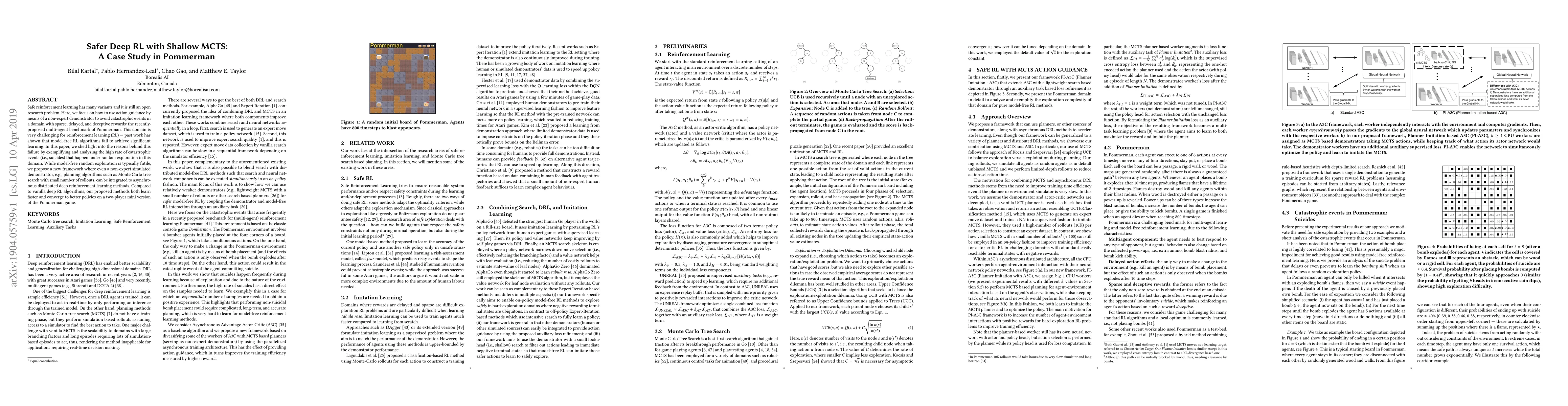 Researchers propose a new framework combining deep reinforcement learning with shallow Monte Carlo tree search for safer exploration in the challenging Pommerman game, achieving faster learning and better policies than vanilla methods.