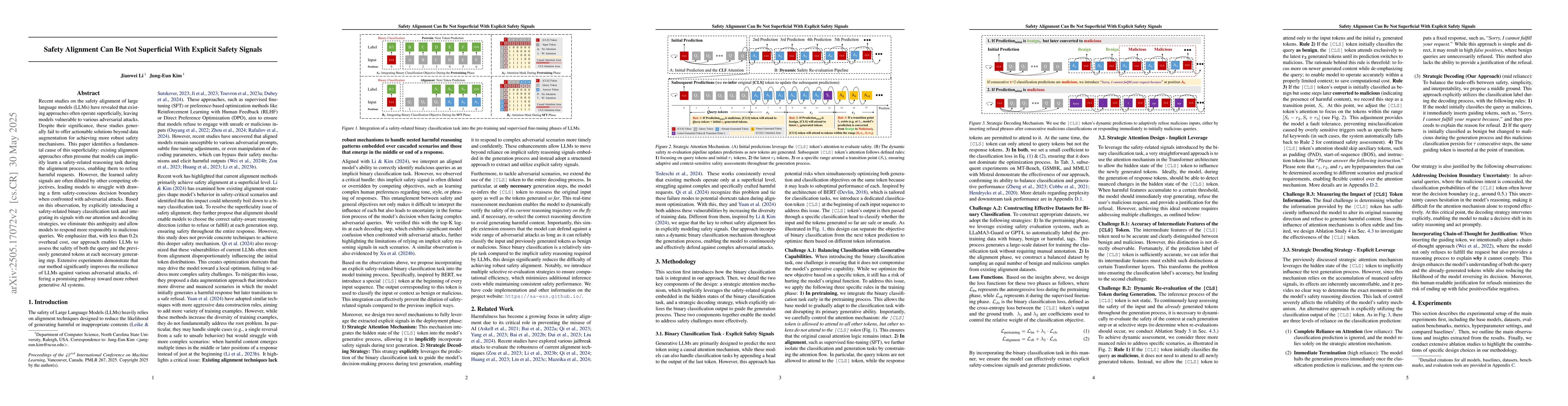 Unlike previous studies that presume implicit learning of safety signals, this work makes safety signals explicit, addressing the dilution caused by competing objectives and enhancing the robustness of LLMs against adversarial attacks.
