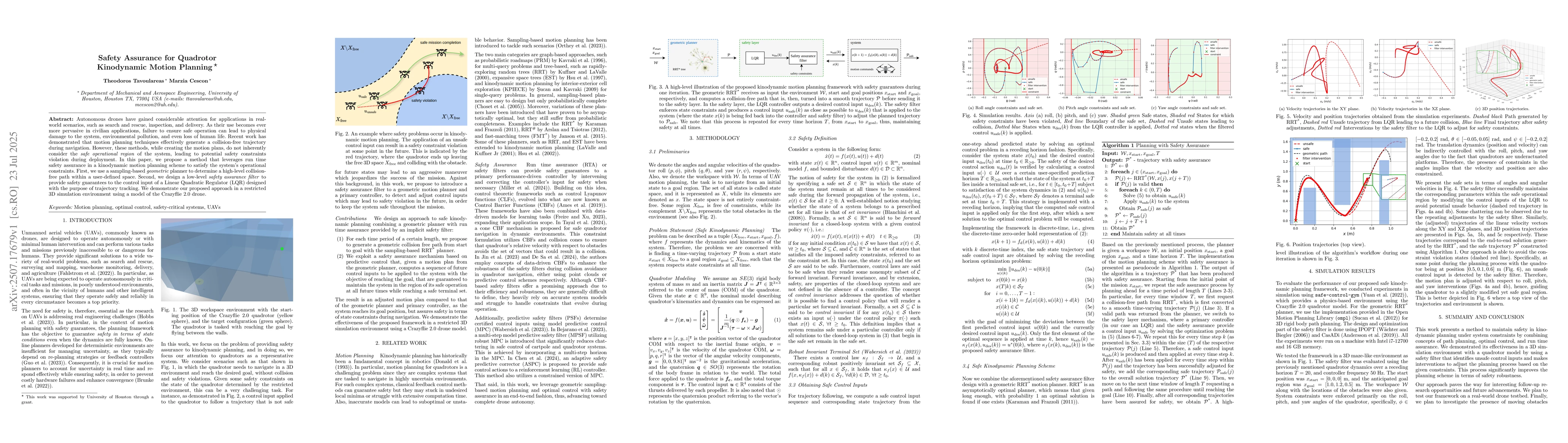Autonomous drones have gained considerable attention for applications in real-world scenarios, such as search and rescue, inspection, and delivery. As their use becomes ever more pervasive in civilian applications, failure to ensure safe operation can lead to physical damage to the system, environmental pollution, and even loss of human life. Recent work has demonstrated that motion planning techniques effectively generate a collision-free trajectory during navigation. However, these methods, while creating the motion plans, do not inherently consider the safe operational region of the system, leading to potential safety constraints violation during deployment. In this paper, we propose a method that leverages run time safety assurance in a kinodynamic motion planning scheme to satisfy the system's operational constraints. First, we use a sampling-based geometric planner to determine a high-level collision-free path within a user-defined space. Second, we design a low-level safety assurance filter to provide safety guarantees to the control input of a Linear Quadratic Regulator (LQR) designed with the purpose of trajectory tracking. We demonstrate our proposed approach in a restricted 3D simulation environment using a model of the Crazyflie 2.0 drone.