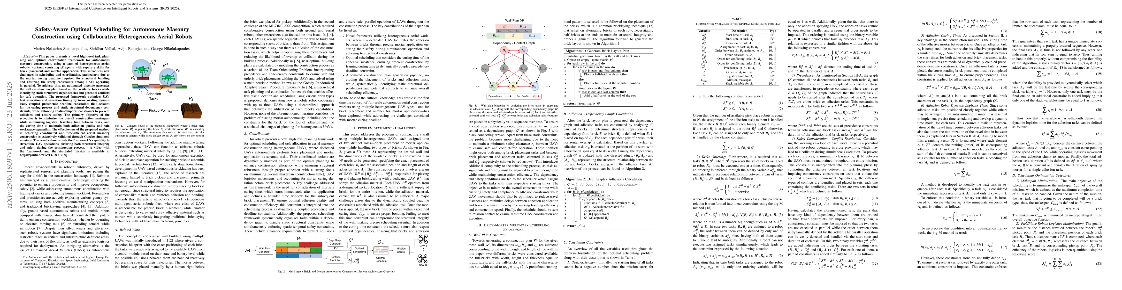 This paper presents a novel high-level task planning and optimal coordination framework for autonomous masonry construction, using a team of heterogeneous aerial robotic workers, consisting of agents with separate skills for brick placement and mortar application. This introduces new challenges in scheduling and coordination, particularly due to the mortar curing deadline required for structural bonding and ensuring the safety constraints among UAVs operating in parallel. To address this, an automated pipeline generates the wall construction plan based on the available bricks while identifying static structural dependencies and potential conflicts for safe operation. The proposed framework optimizes UAV task allocation and execution timing by incorporating dynamically coupled precedence deadline constraints that account for the curing process and static structural dependency constraints, while enforcing spatio-temporal constraints to prevent collisions and ensure safety. The primary objective of the scheduler is to minimize the overall construction makespan while minimizing logistics, traveling time between tasks, and the curing time to maintain both adhesion quality and safe workspace separation. The effectiveness of the proposed method in achieving coordinated and time-efficient aerial masonry construction is extensively validated through Gazebo simulated missions. The results demonstrate the framework's capability to streamline UAV operations, ensuring both structural integrity and safety during the construction process.