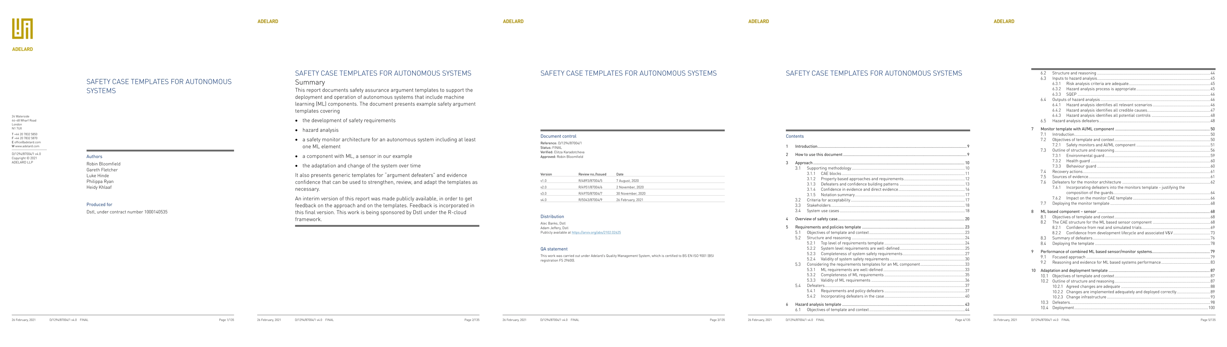 This report documents safety assurance argument templates to support the deployment and operation of autonomous systems that include machine learning (ML) components. The document presents example safety argument templates covering: the development of safety requirements, hazard analysis, a safety monitor architecture for an autonomous system including at least one ML element, a component with ML and the adaptation and change of the system over time. The report also presents generic templates for argument defeaters and evidence confidence that can be used to strengthen, review, and adapt the templates as necessary. This report is made available to get feedback on the approach and on the templates. This work was sponsored by the UK Dstl under the R-cloud framework.