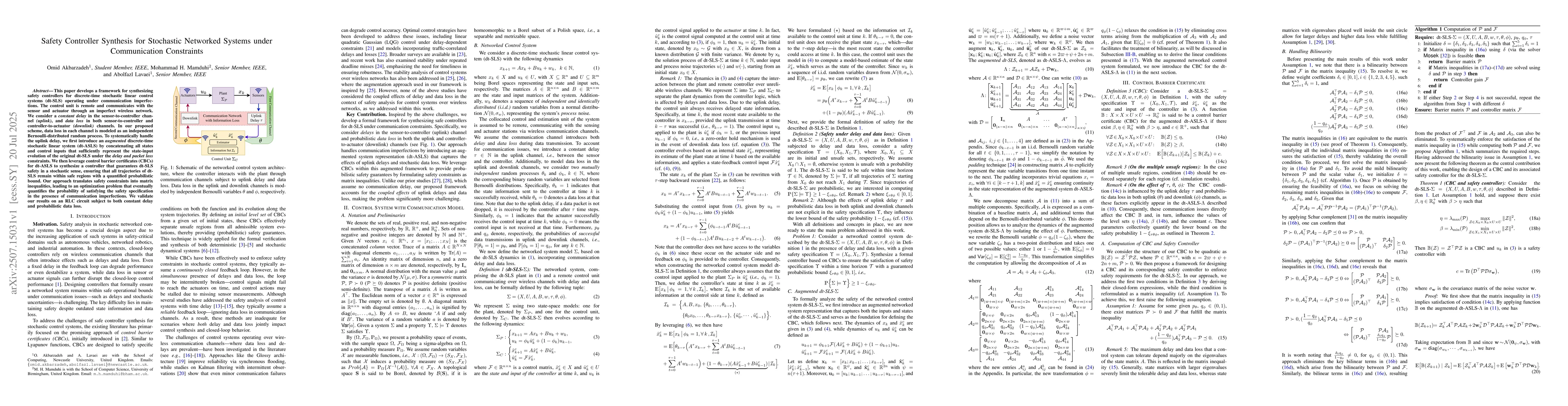 This work is significant as it addresses the challenge of ensuring safety in stochastic control systems subject to communication constraints, which is crucial for real-world applications such as networked control systems.