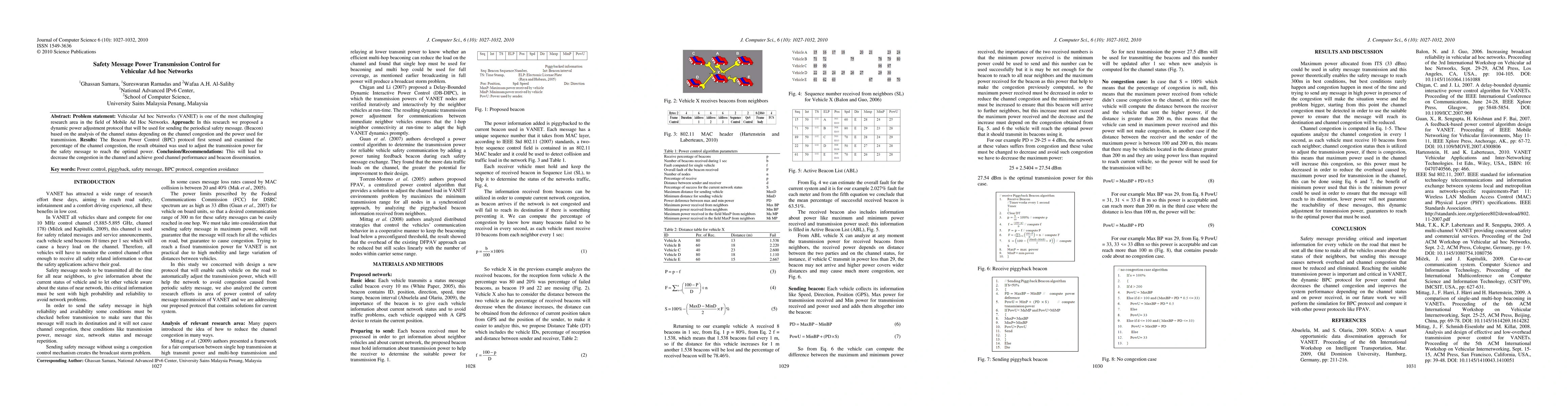 This paper proposes a dynamic power adjustment protocol for Vehicular Ad hoc Networks (VANET) to optimize the transmission of safety messages (Beacons) based on channel congestion analysis. The Beacon Power Control (BPC) protocol adjusts transmission power to reduce congestion and enhance channel performance.