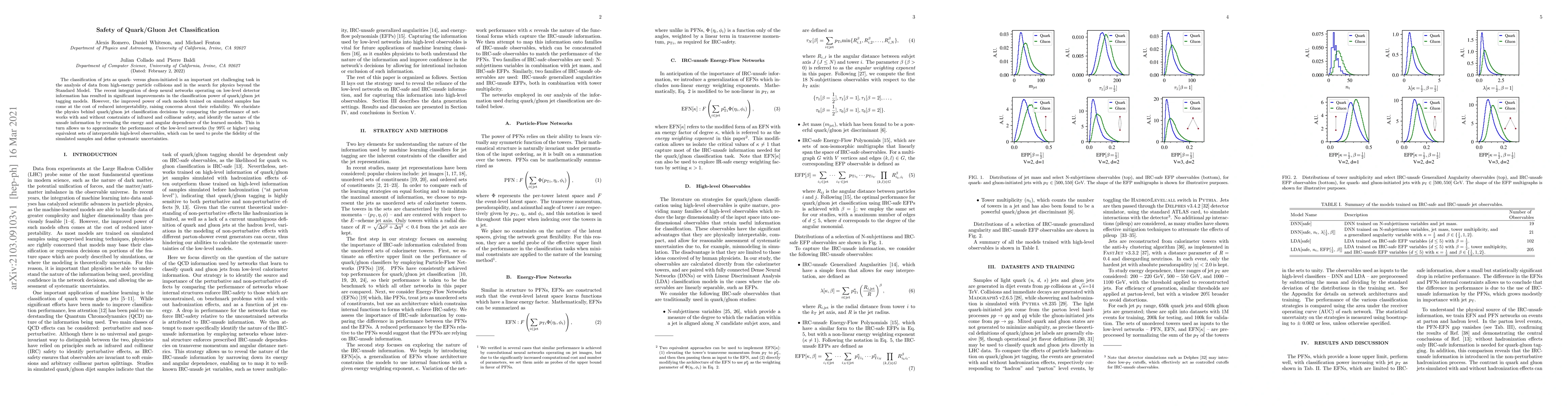 Researchers investigated the safety of quark/gluon jet classification in high-energy particle collisions, finding that constraints can improve model interpretability while maintaining performance. They developed a method to approximate models using interpretable observables, allowing for better probe of simulated samples' fidelity.