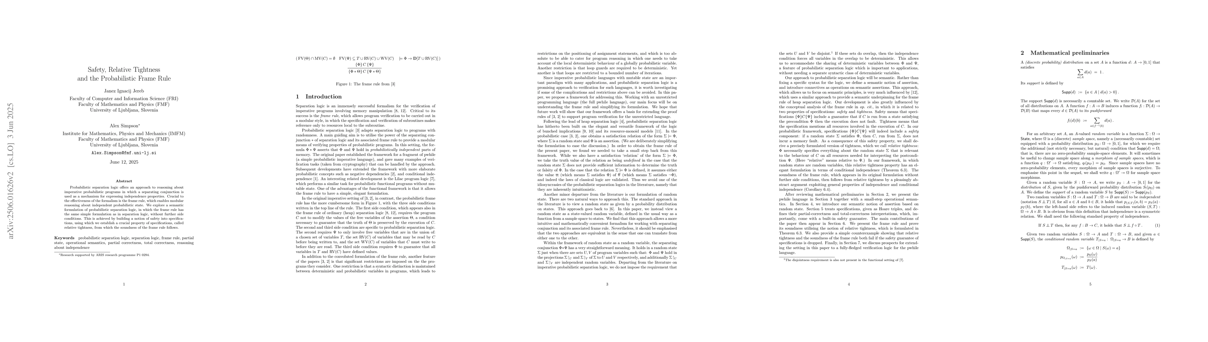 Probabilistic separation logic offers an approach to reasoning about imperative probabilistic programs in which a separating conjunction is used as a mechanism for expressing independence properties. Crucial to the effectiveness of the formalism is the frame rule, which enables modular reasoning about independent probabilistic state. We explore a semantic formulation of probabilistic separation logic, in which the frame rule has the same simple formulation as in separation logic, without further side conditions. This is achieved by building a notion of safety into specifications, using which we establish a crucial property of specifications, called relative tightness, from which the soundness of the frame rule follows.