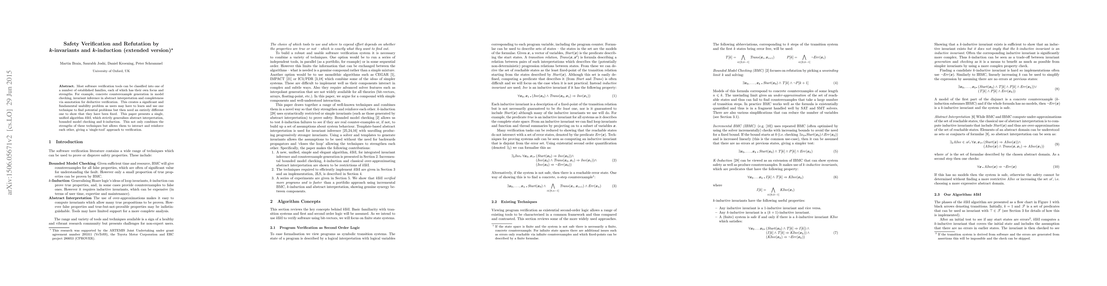 This paper introduces kIkI, a unified algorithm that generalizes abstract interpretation, bounded model checking, and k-induction, aiming to provide a single-tool approach to software verification by combining and reinforcing the strengths of these techniques. The kIkI algorithm addresses the usability problem of needing multiple verification tools by offering a comprehensive solution.